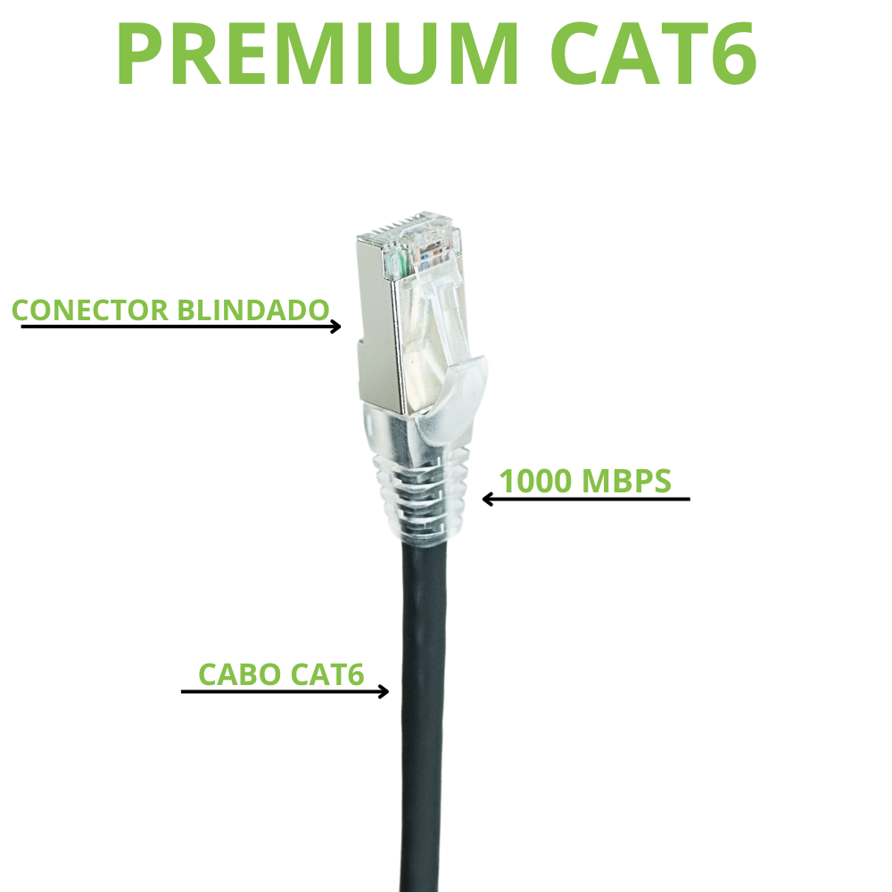 CABO DE REDE CAT6 15 METROS PREMIUM PRETO 1000MBPS