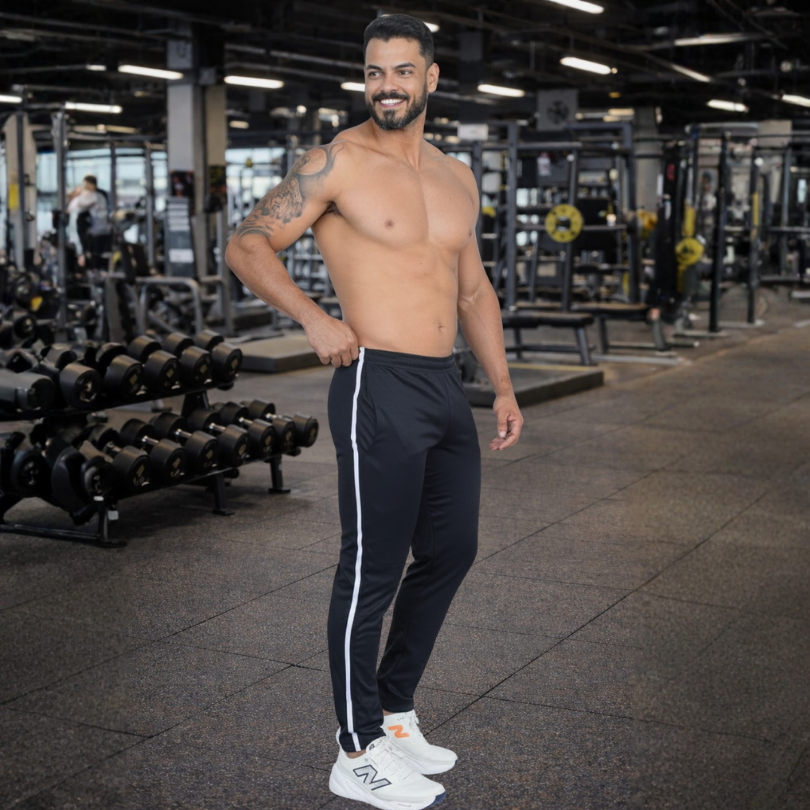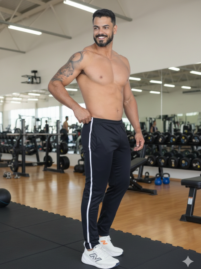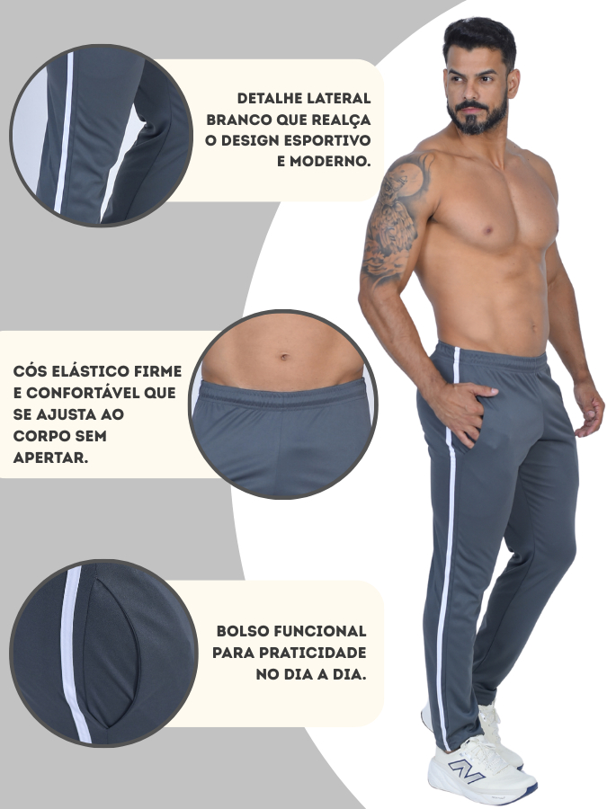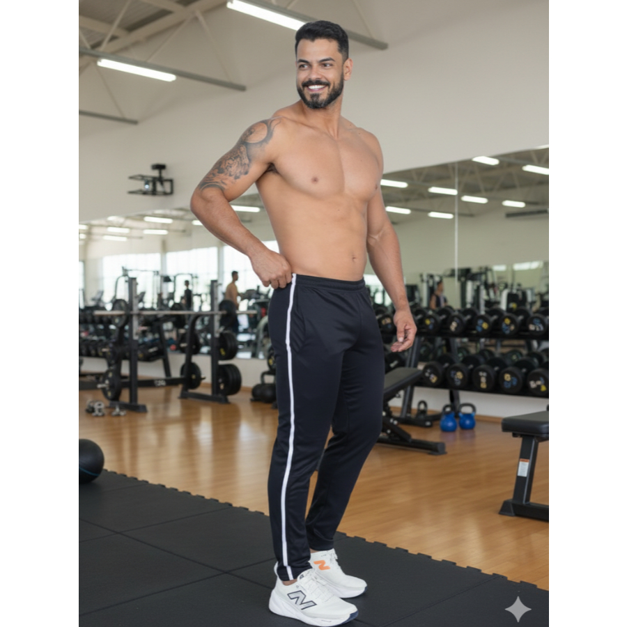 Calça Masculina Fitness Speed Dry Fit Com Listra Lateral Conforto E Performance