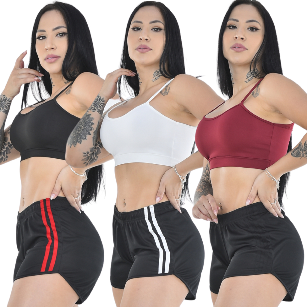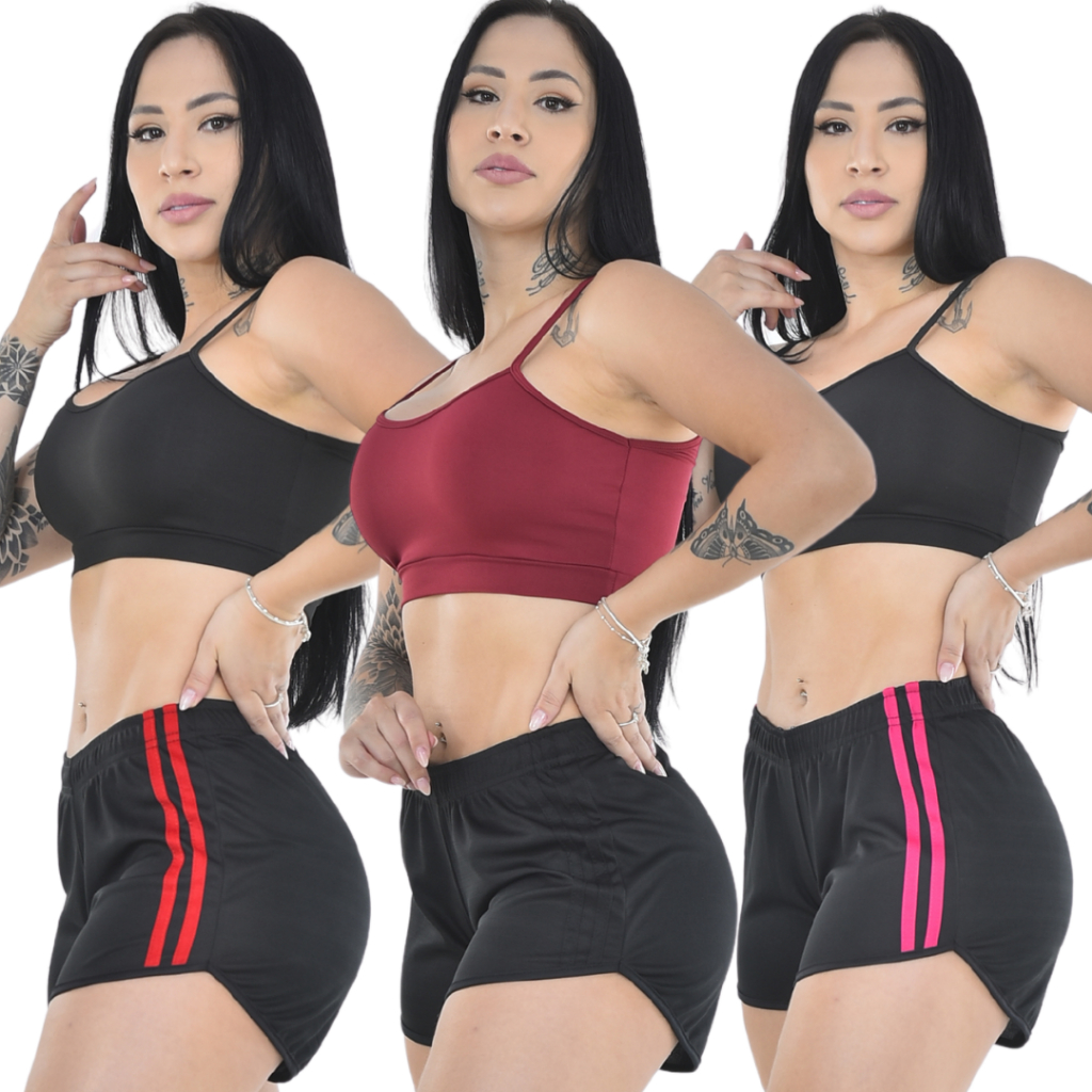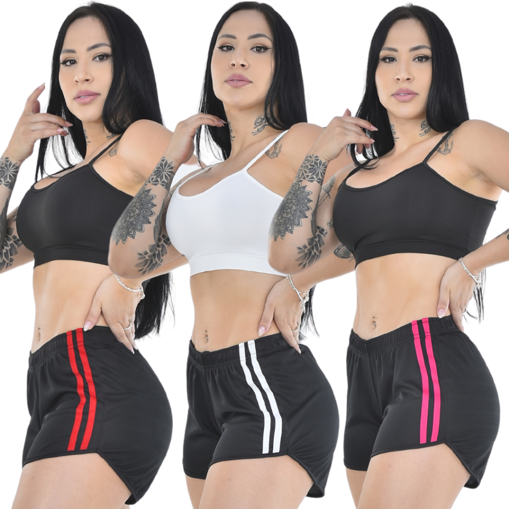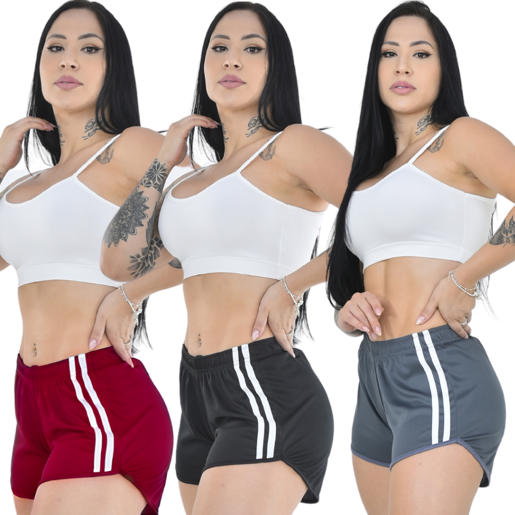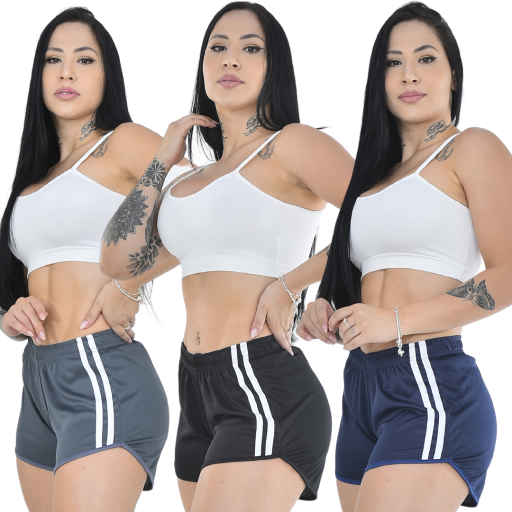 Kit 3 Shorts Feminino Fitness para Academia Dry Bermuda Feminina Esportiva e Dia a Dia