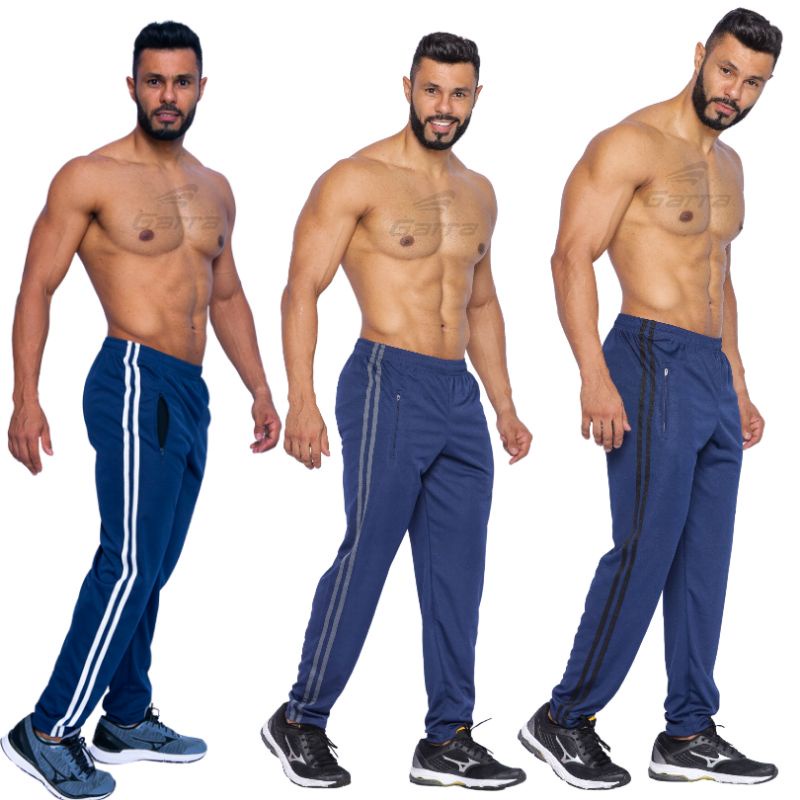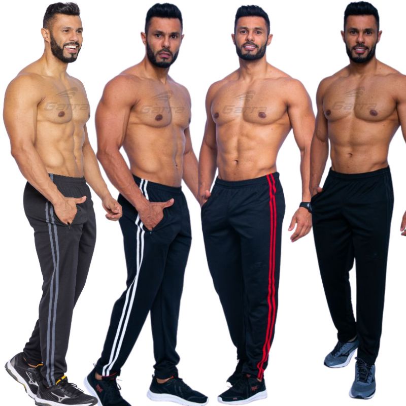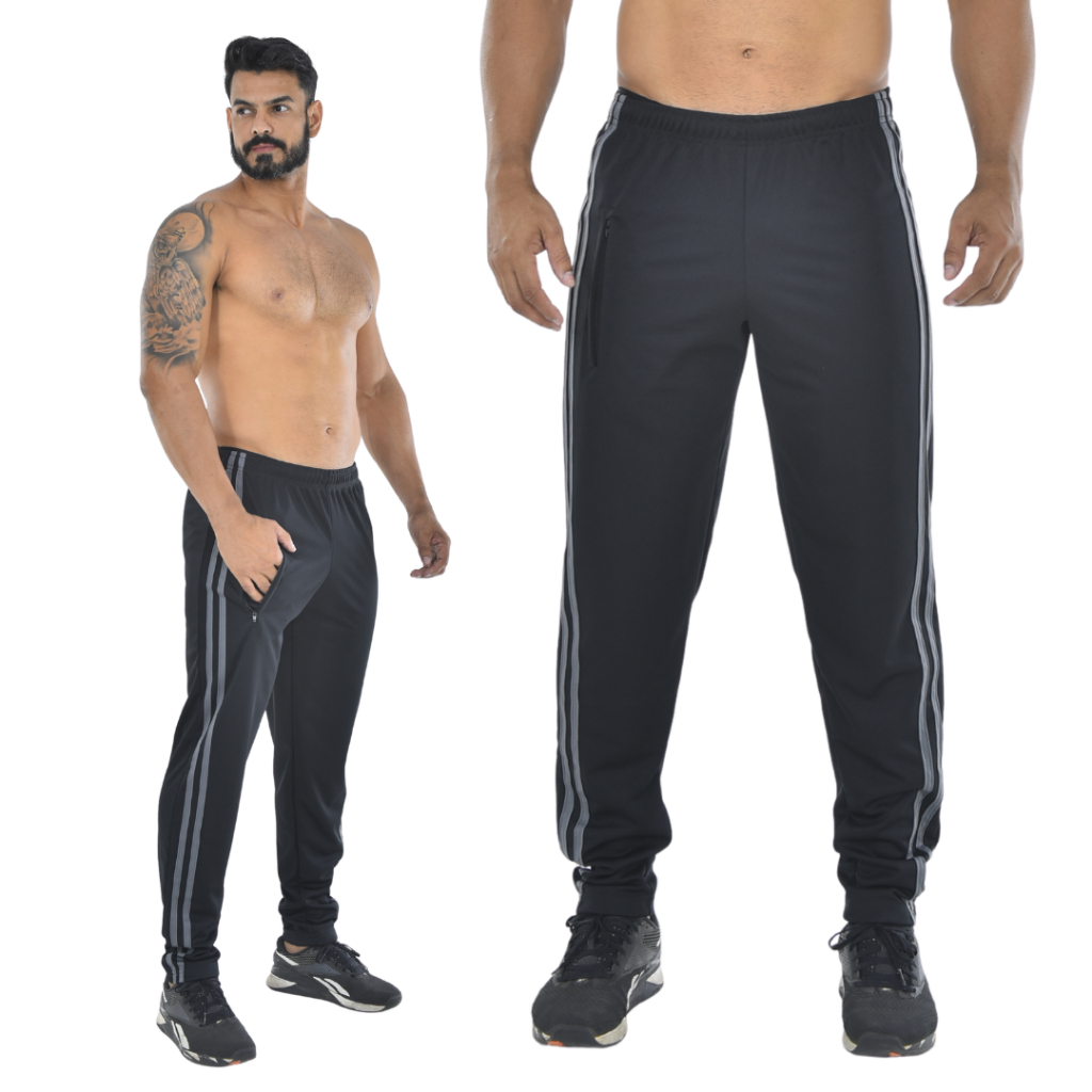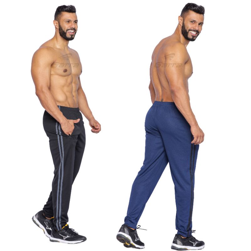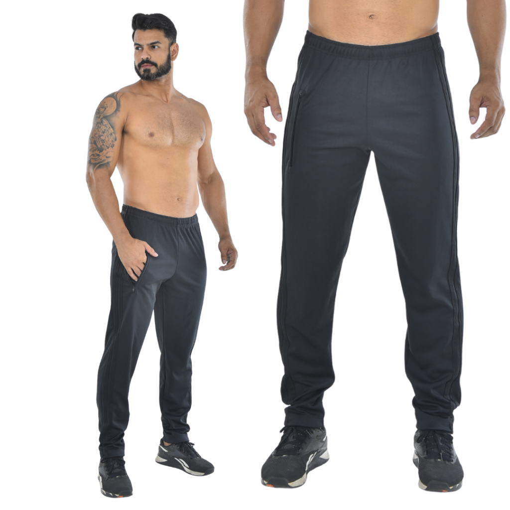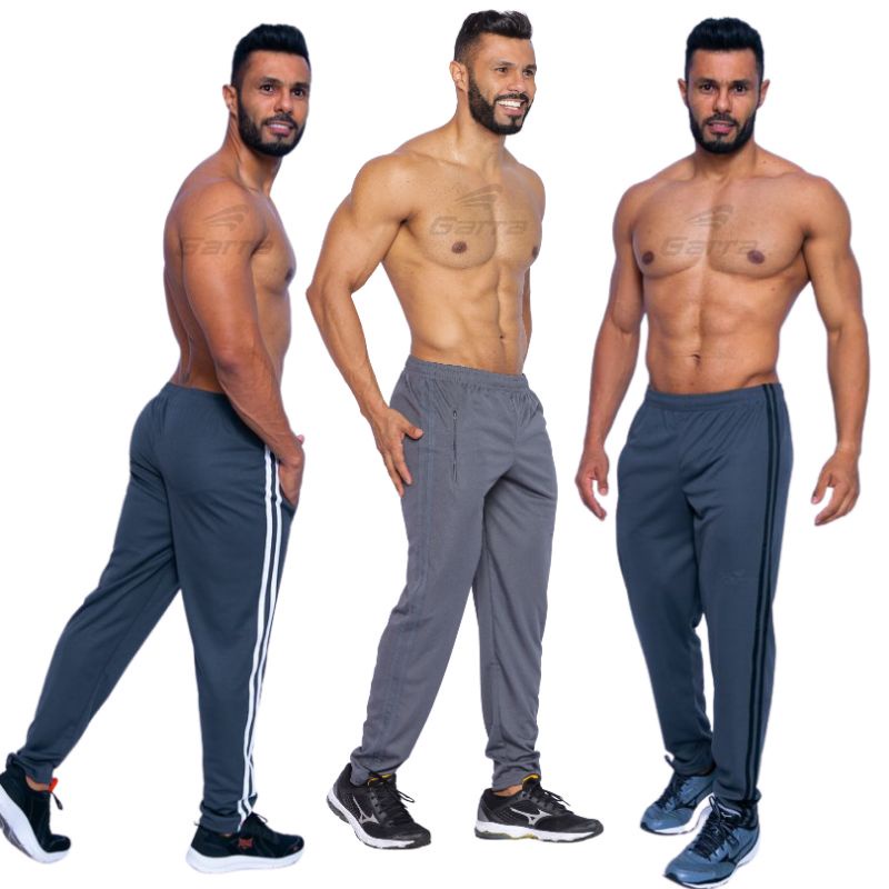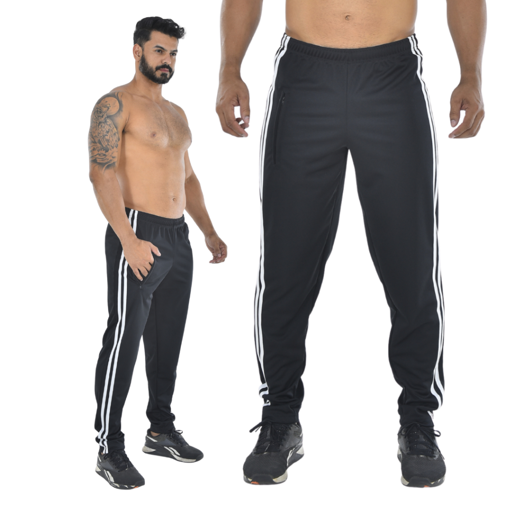 Calça masculina para atividade física em academia e corrida com cordão e bolso com zíper