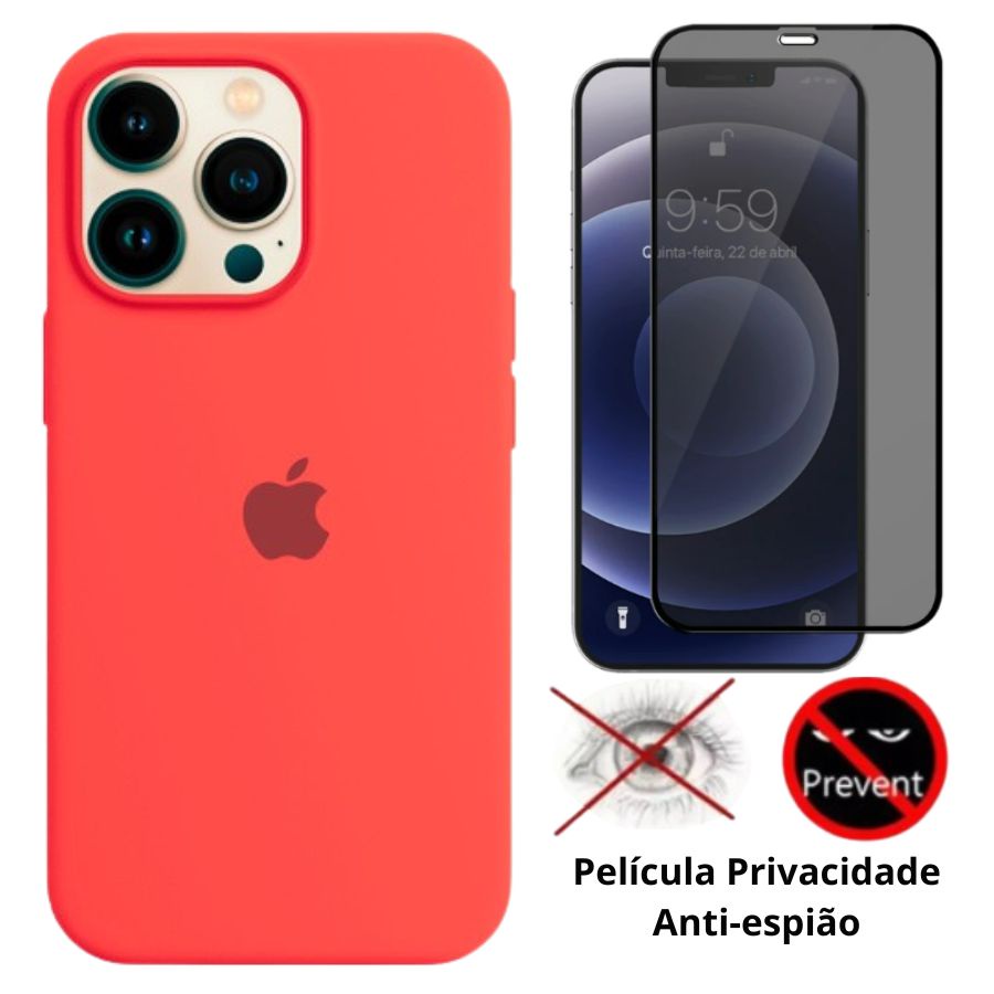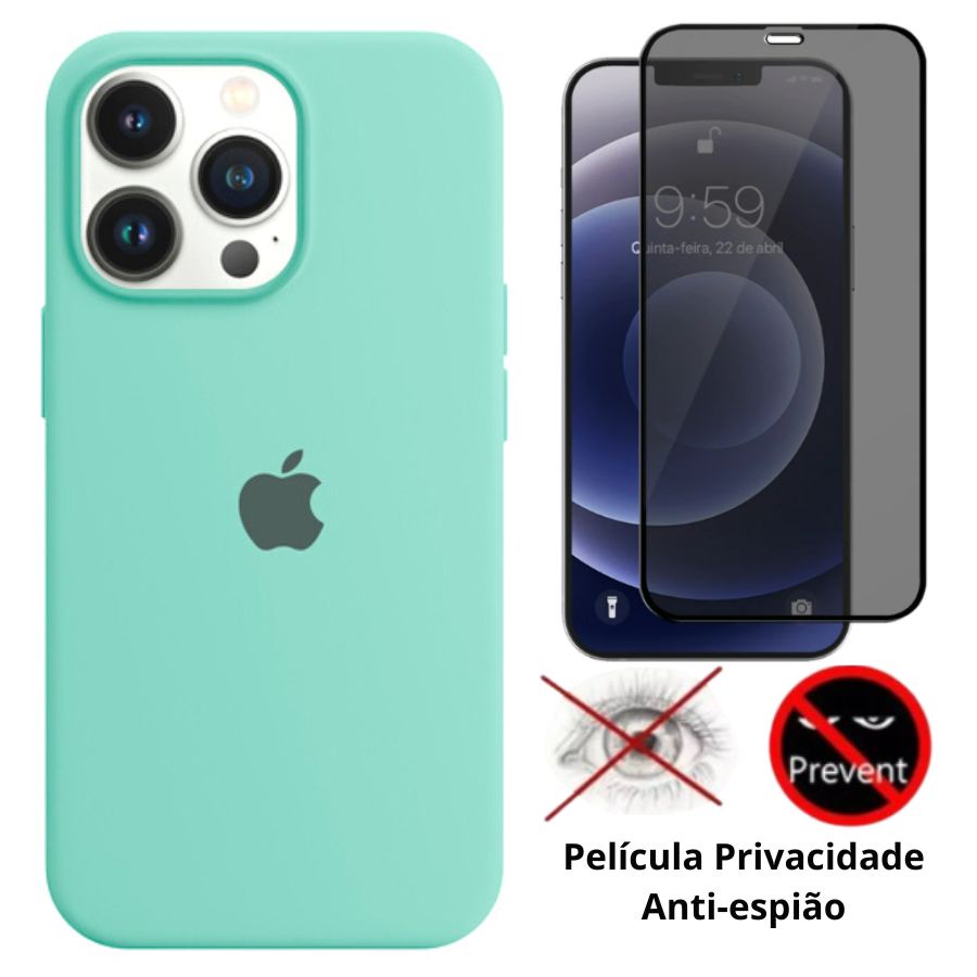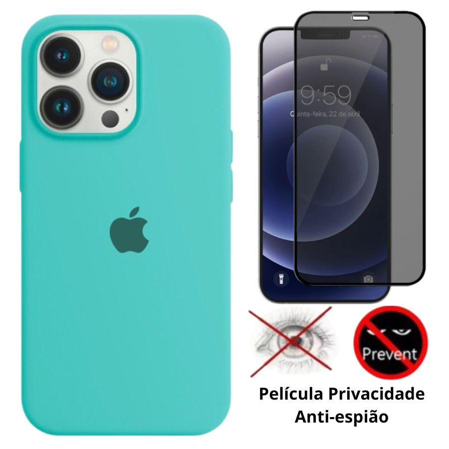 Kit 2 em 1 Capa Silicone Aveludada + Película Privacidade 3D 5D Compatível iPhone 12 12 Pro