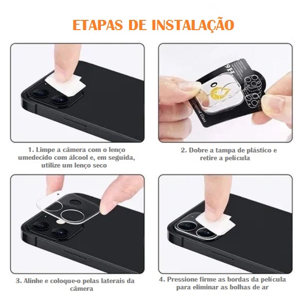 Película Vidro Para Câmera iPhone 12 / 12 Pro / 12 Pro Max / 12 Mini Ultra Resistente