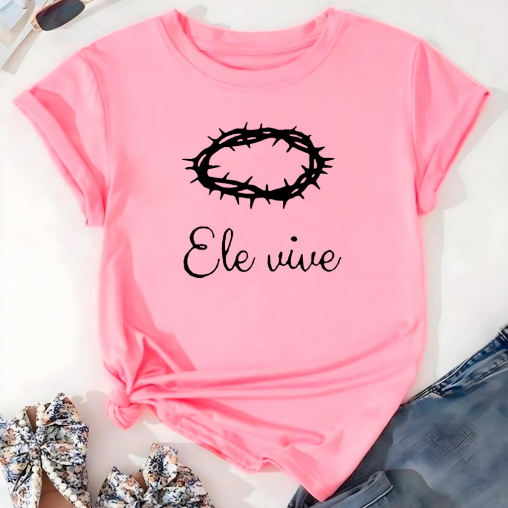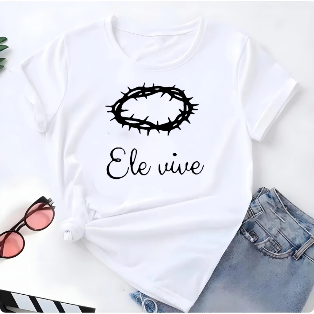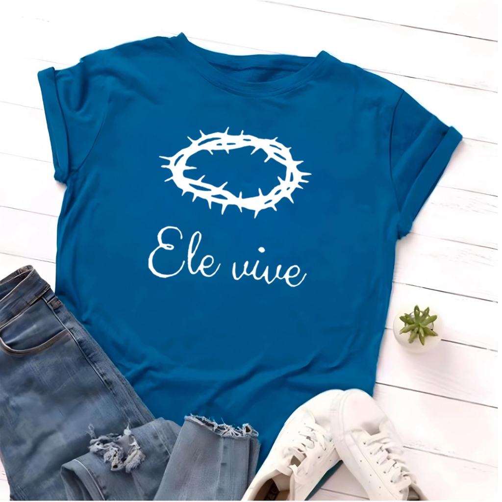 Blusa T-shirt Ele Vive Jesus Cristo Fé Linda Camiseta Feminina Camisa