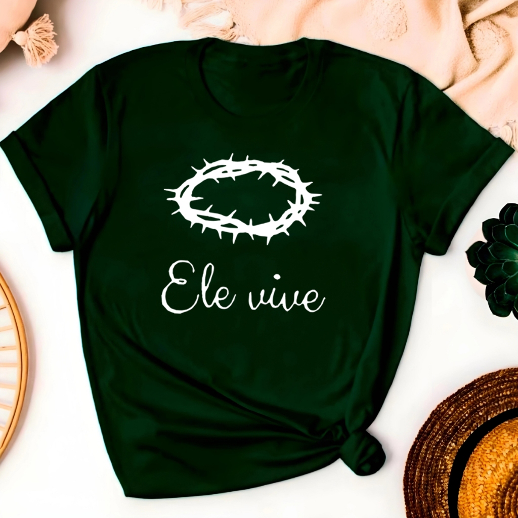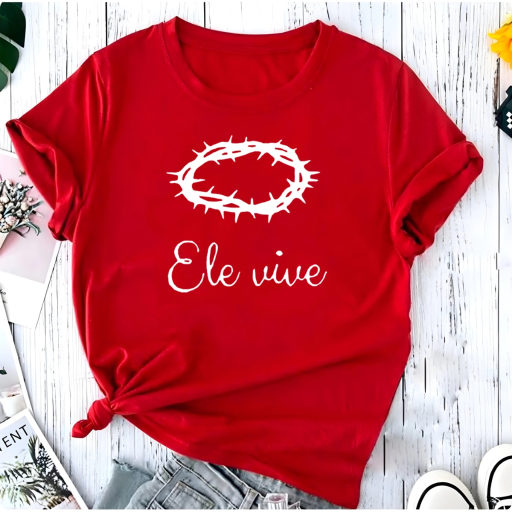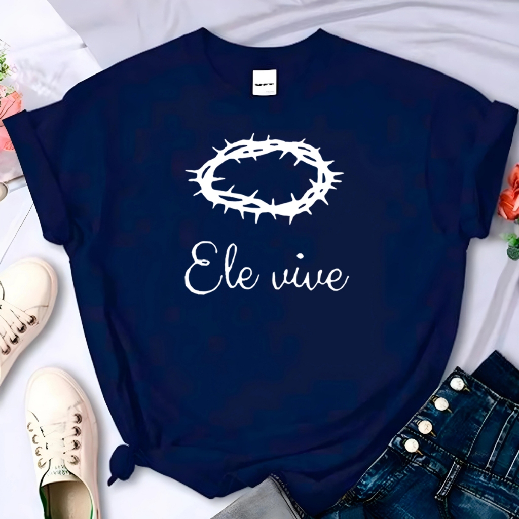 Blusa T-shirt Ele Vive Jesus Cristo Fé Linda Camiseta Feminina Camisa