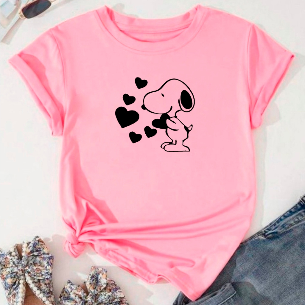 Blusa T-shirt Linda Camiseta Feminina Snoopy Coração Fofo Camisa