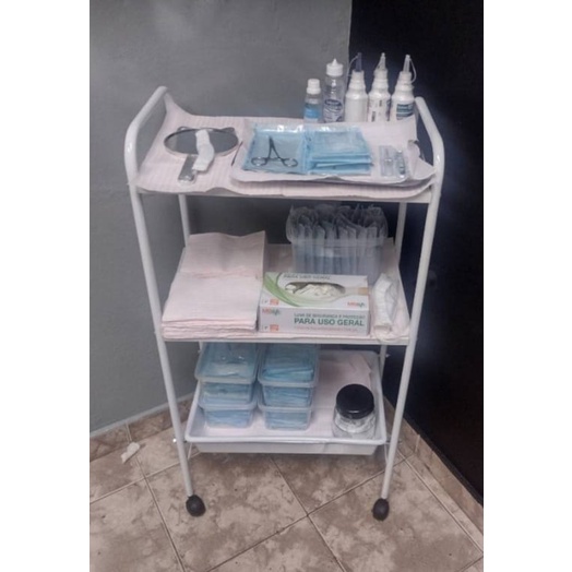 Carrinho Auxiliar Estética 2 Tampos 1 Bandejas Branco