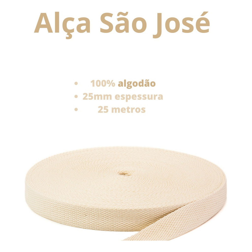 Alça De Bolsa Cru São José 25mm - 25 Metros - 100% Algodão Liso