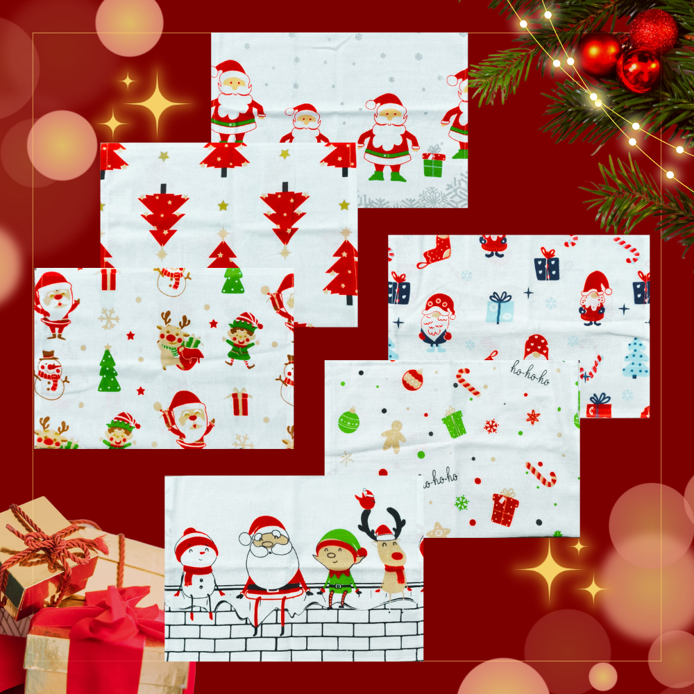 Kit 6 Panos de Prato Natal Estampas Natalinas - tamanho grande