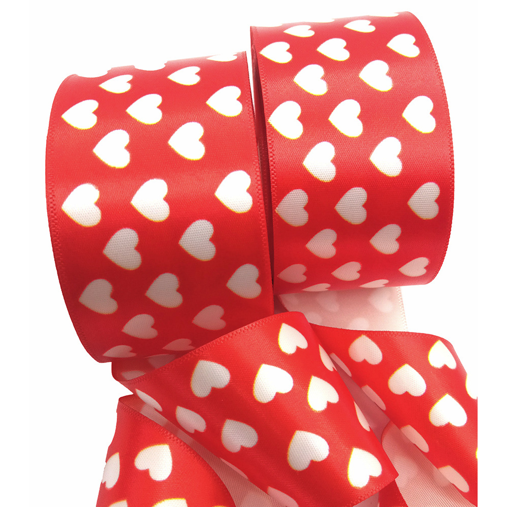 Fita de Cetim N9 10m para Laços Estampa Coração Vermelha
