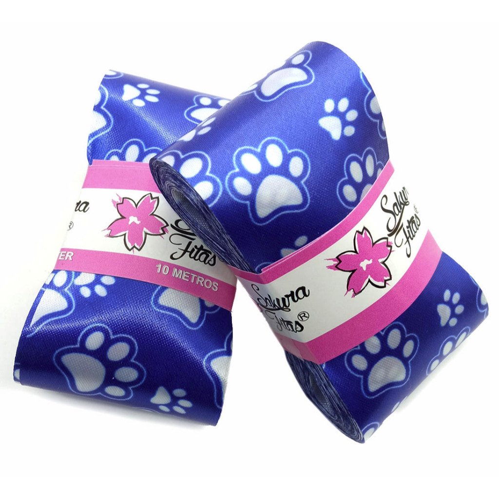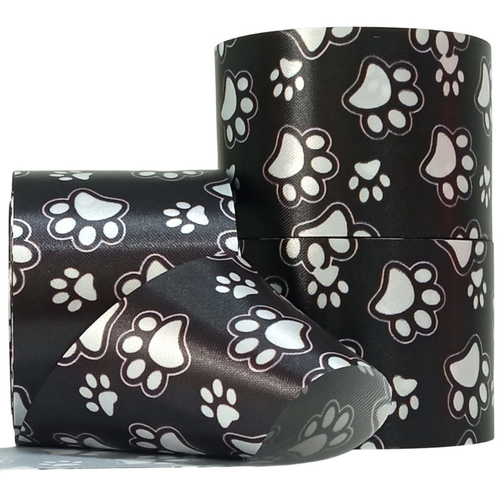 Fita de Cetim Estampada Patinha N9 - Rolo com 10 Metros