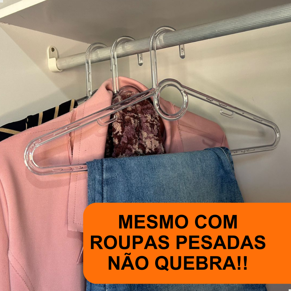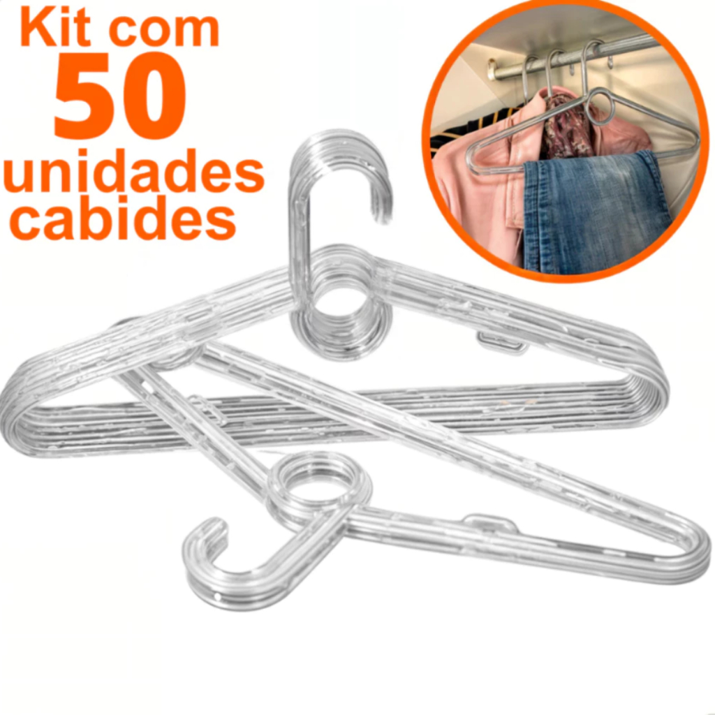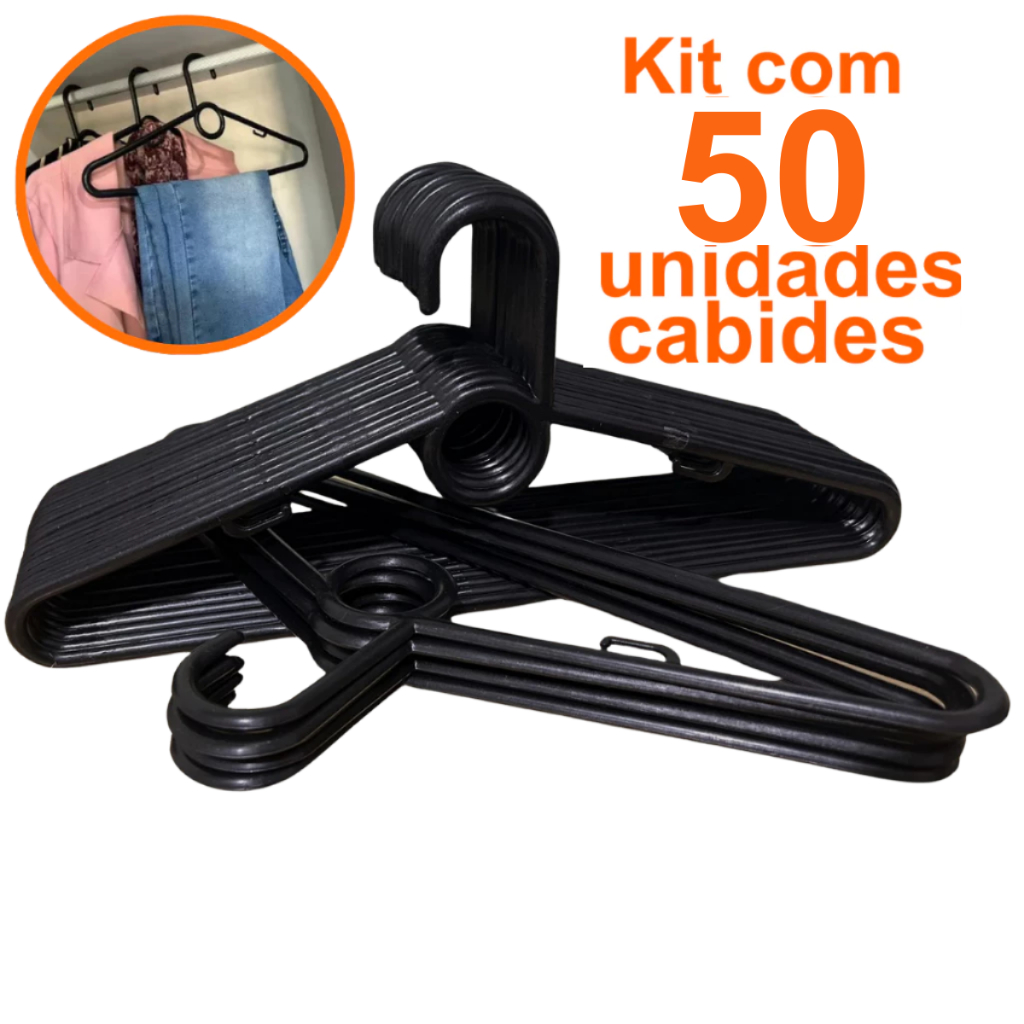 Kit 50 Unidades de Cabides Reforçado Branco Preto e Transparente de Adulto Antideslizante