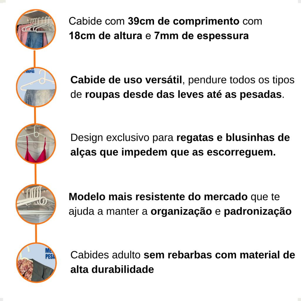Kit 10/20/30/50 Unidades de Cabides Reforçado Branco de Adulto Antideslizante