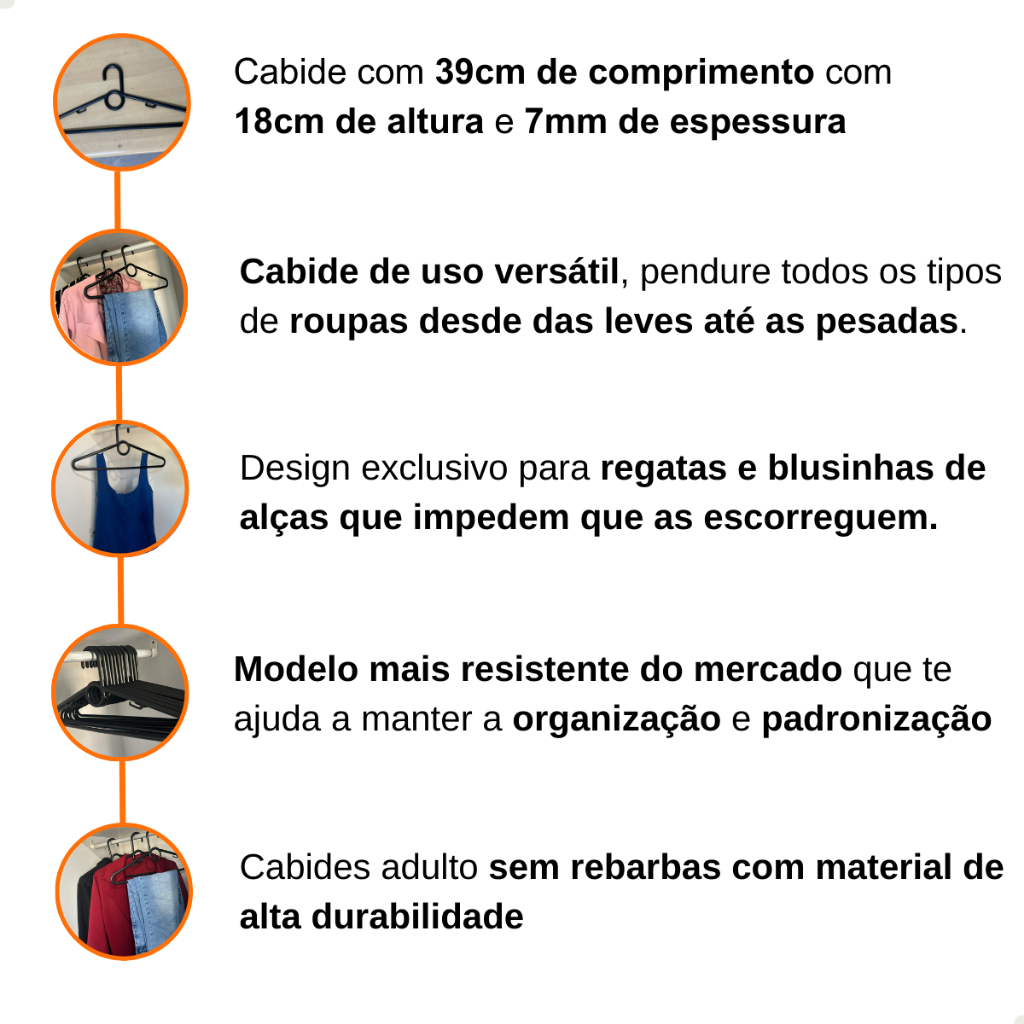 Kit 10/20/30/50 Unidades de Cabides Preto Reforçado para Guarda Roupa