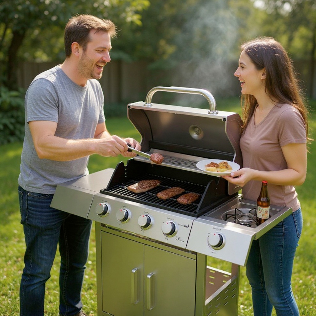Churrasqueira Gas Inox 4 Queimadores a Bafo Termometro Rodinhas Acendimento Automático Profissional