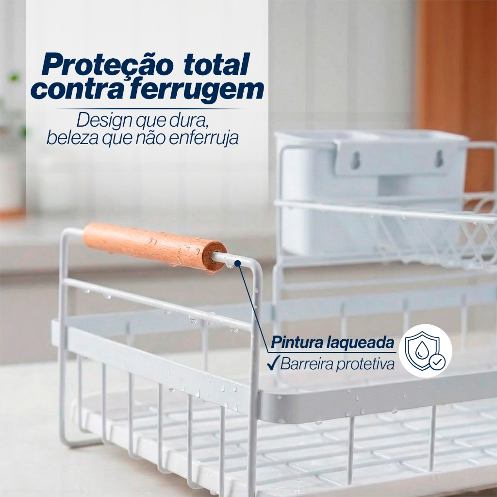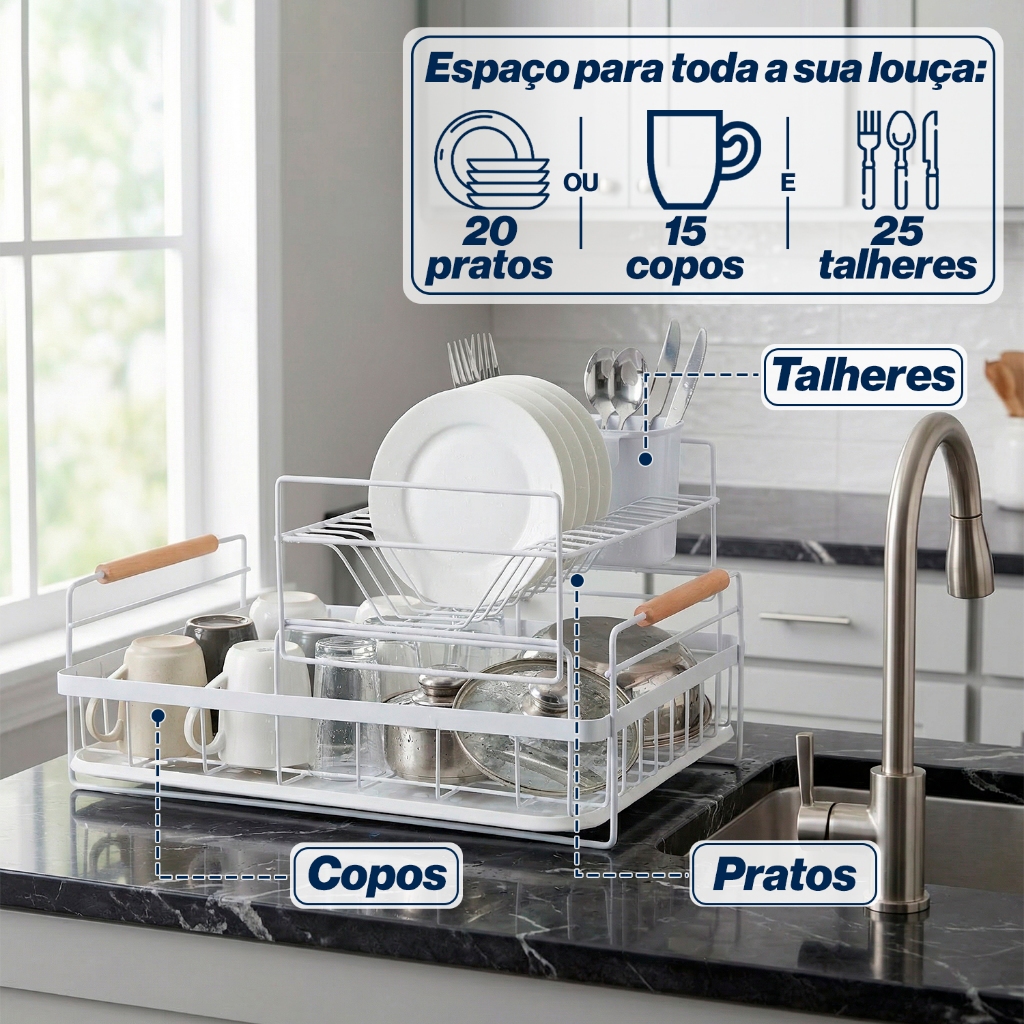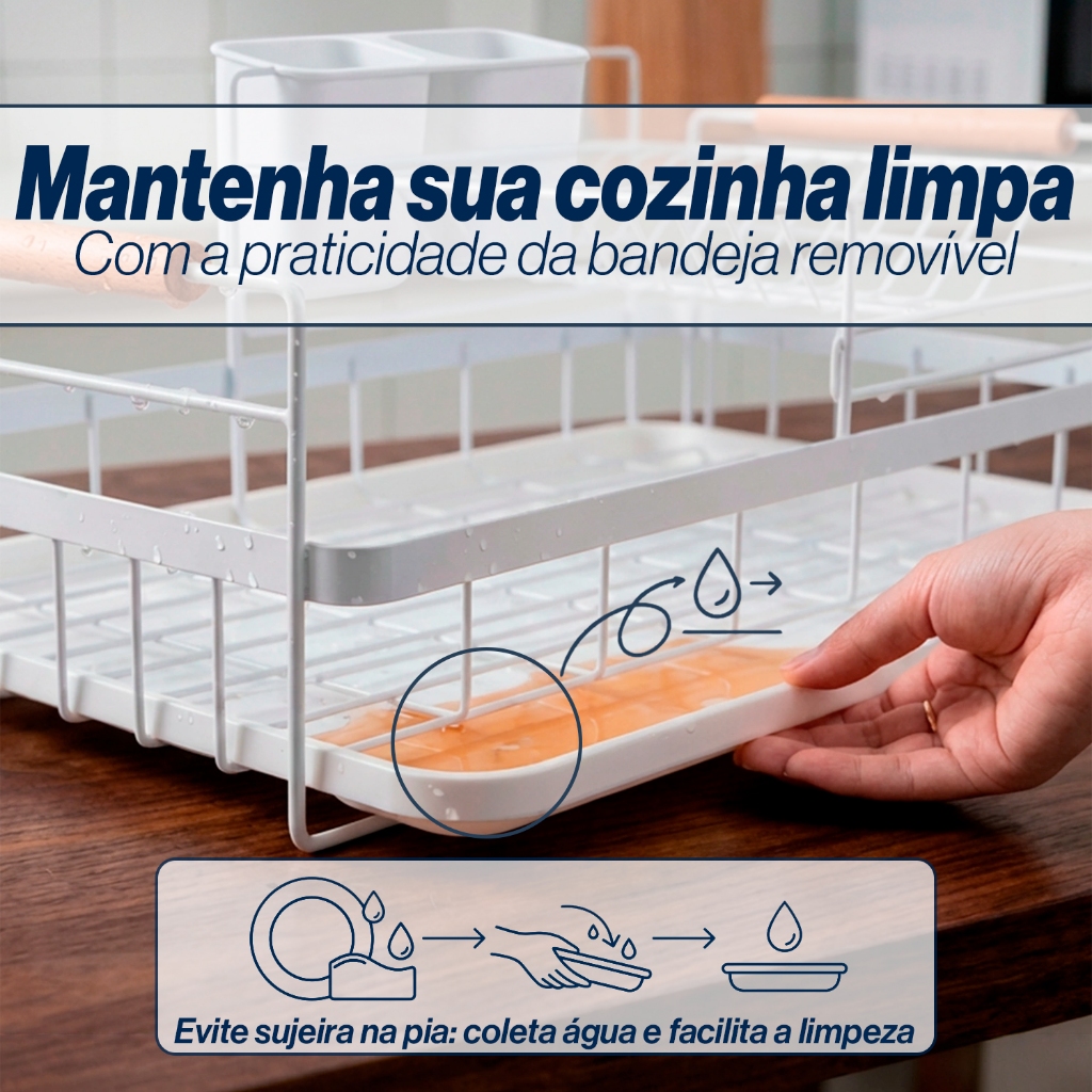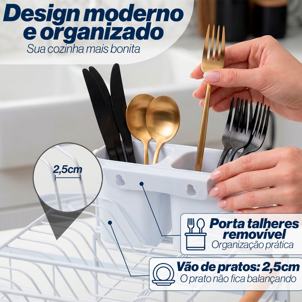 Escorredor de pratos Louca Secador de Louça com bandeja escoamento organizador de Pia Preto e Branco