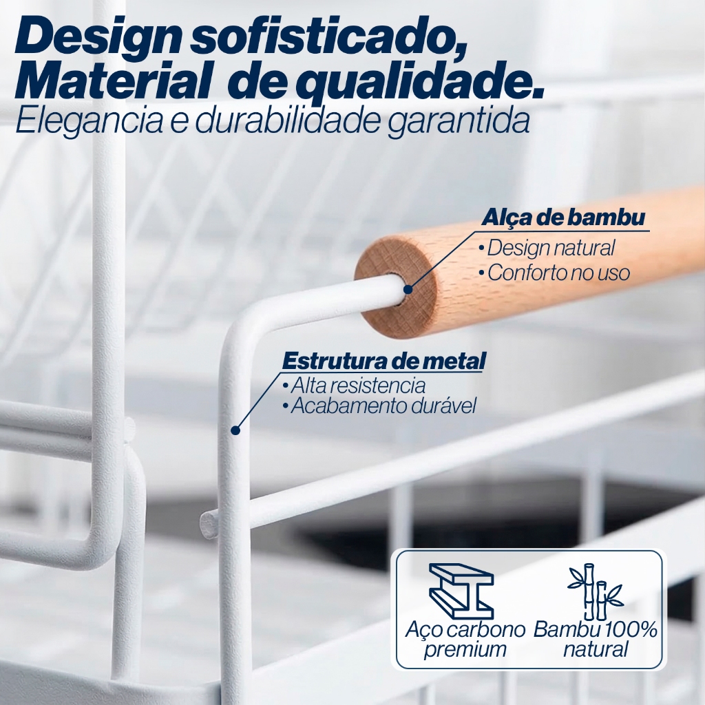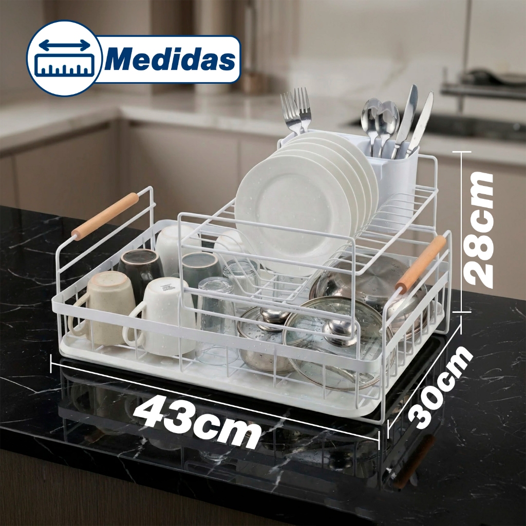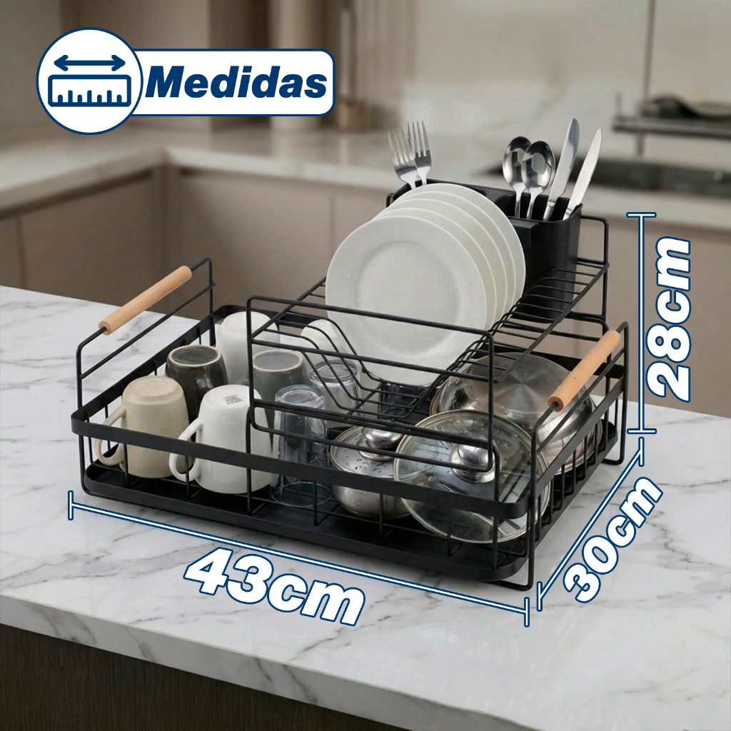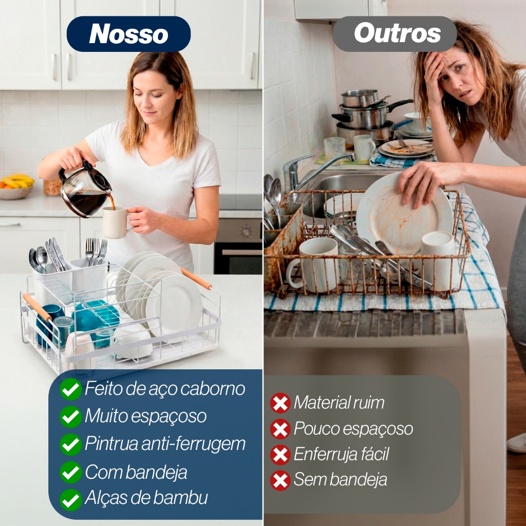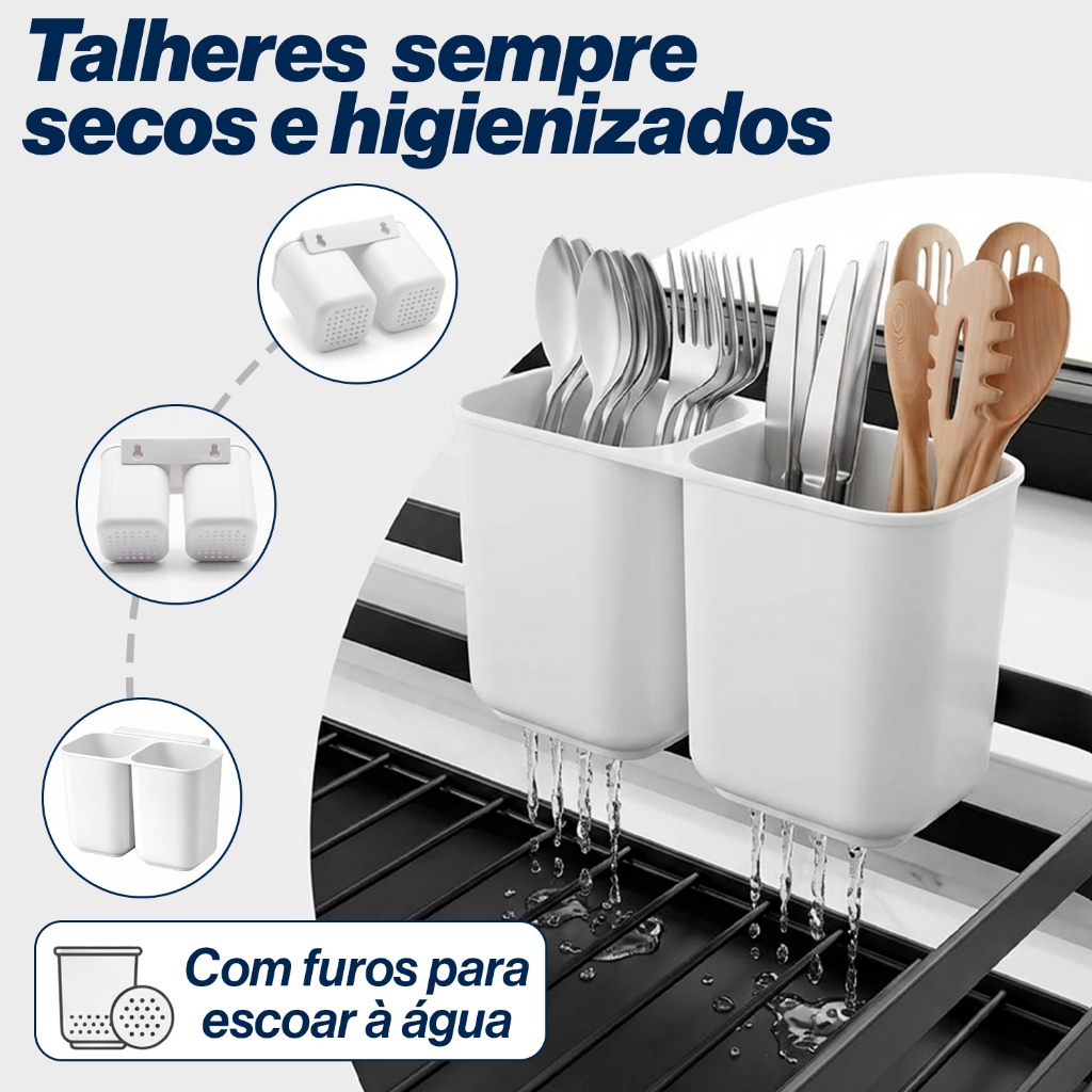 Escorredor de pratos Louca Secador de Louça com bandeja escoamento organizador de Pia Preto e Branco