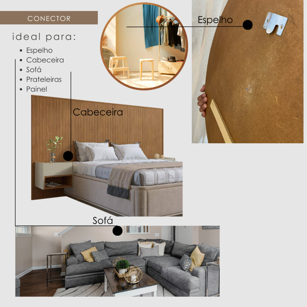 6 Pares Conector Cabeceira Sofá Painel Tvs União Encaixe