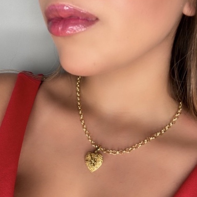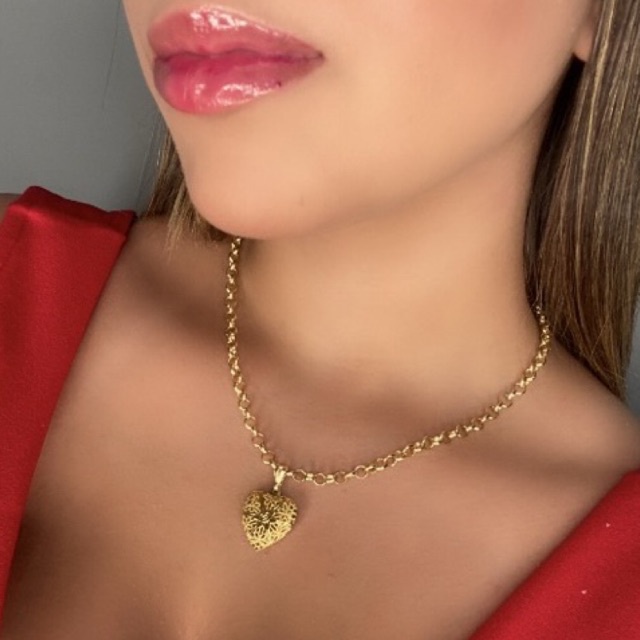 Corrente feminina elo português 5 mm banhado a OURO 18 milésimos + pingente