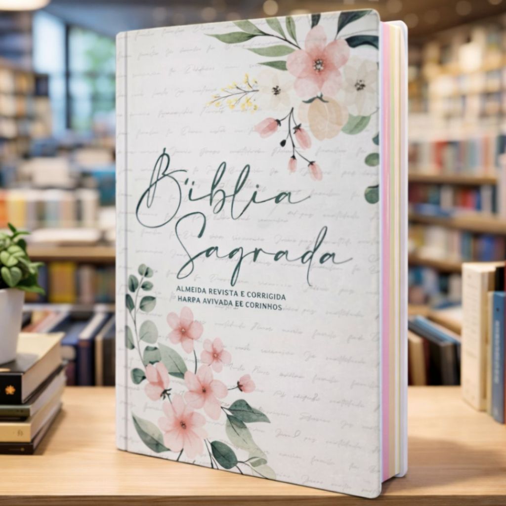 Bíblia Feminina | Letra Maior | Floral Branca | Harpa & Corinhos | Capa Dura | RC