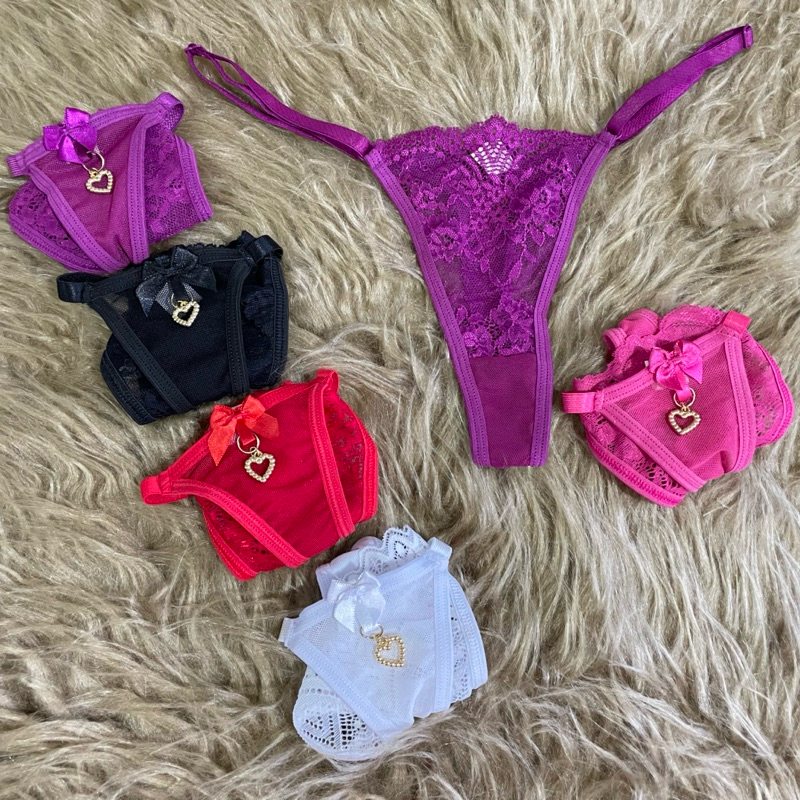 Kit 3 Tangas Pingente Coração Sexy Fio Dental