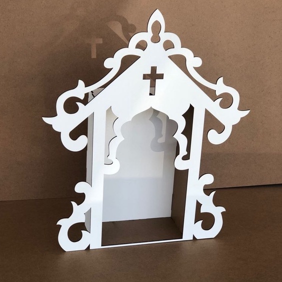 Capela / Oratório igreja arabesco Grande com 47cm em mdf branco de 3mm
