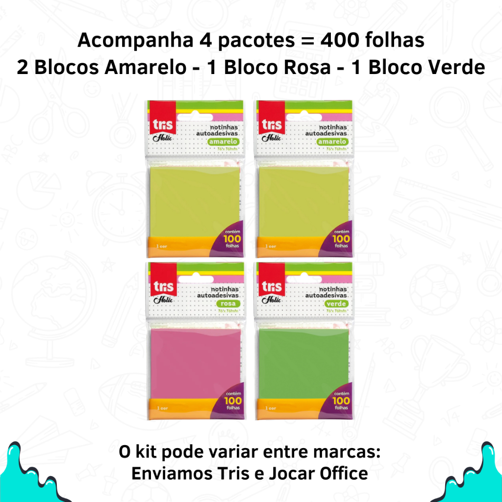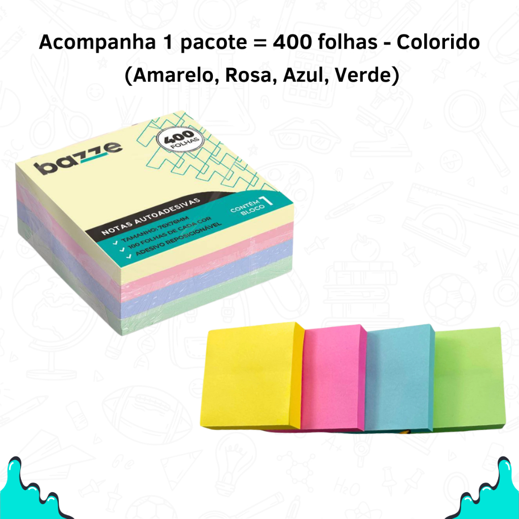 Kit Bloco de Notas 76x76 Colorido 400 Folhas Adesivo Anotações Fofo Barato Pequeno Anotação Mural