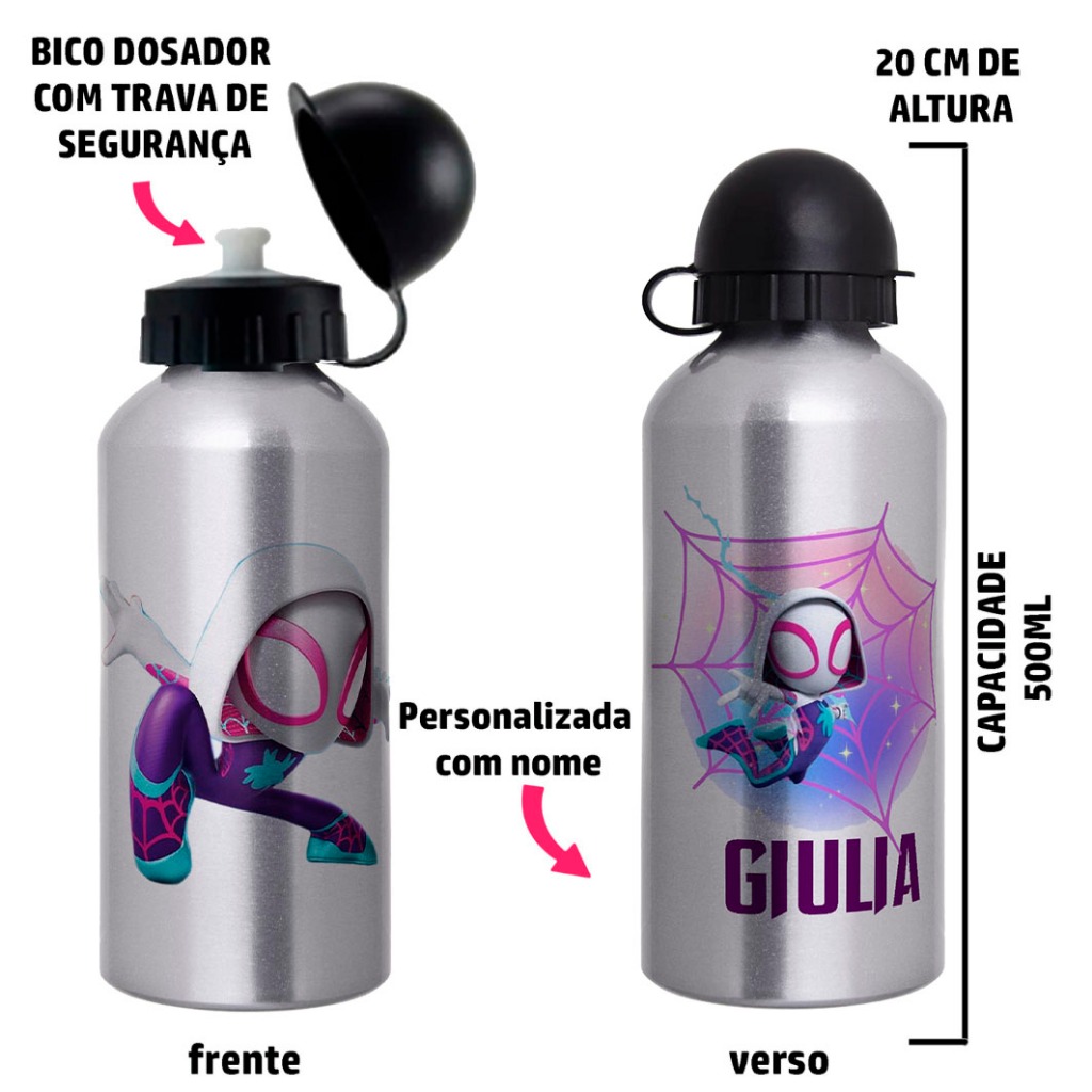 Garrafa Squeeze de alumínio Homem Aranha Cute - Personalizada com nome