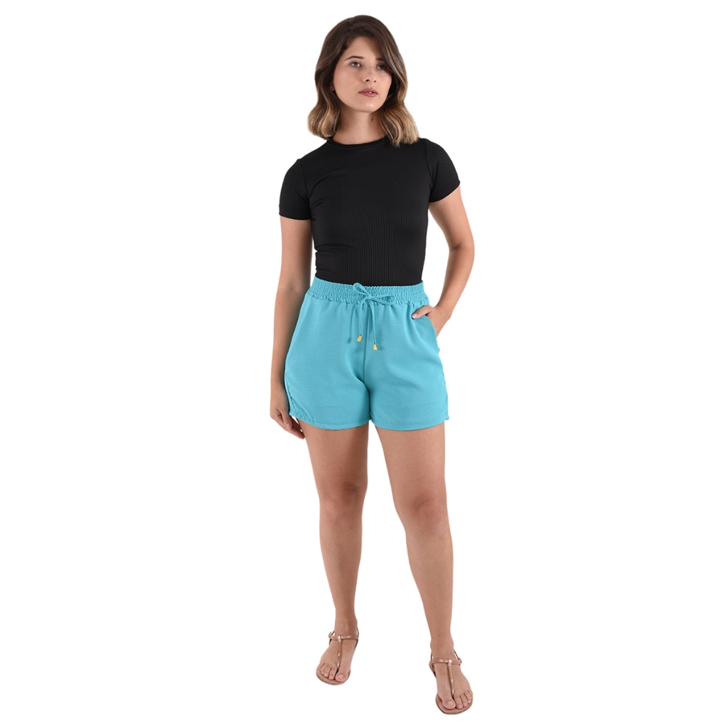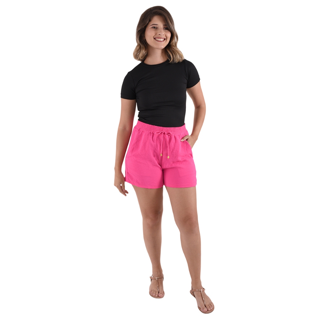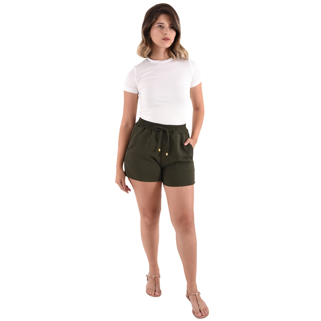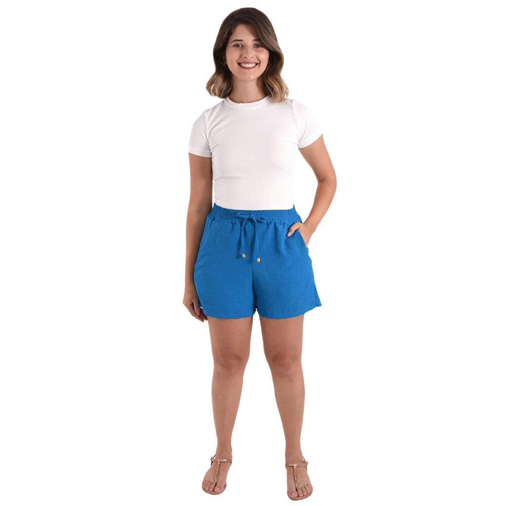 Shorts Bermuda Feminina Basica Dunas Cintura Alta Bolsos