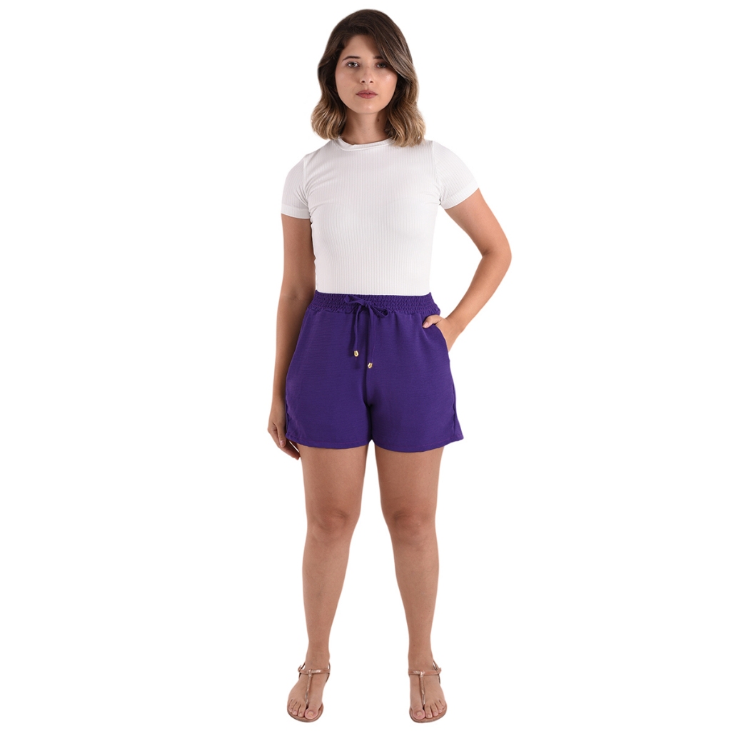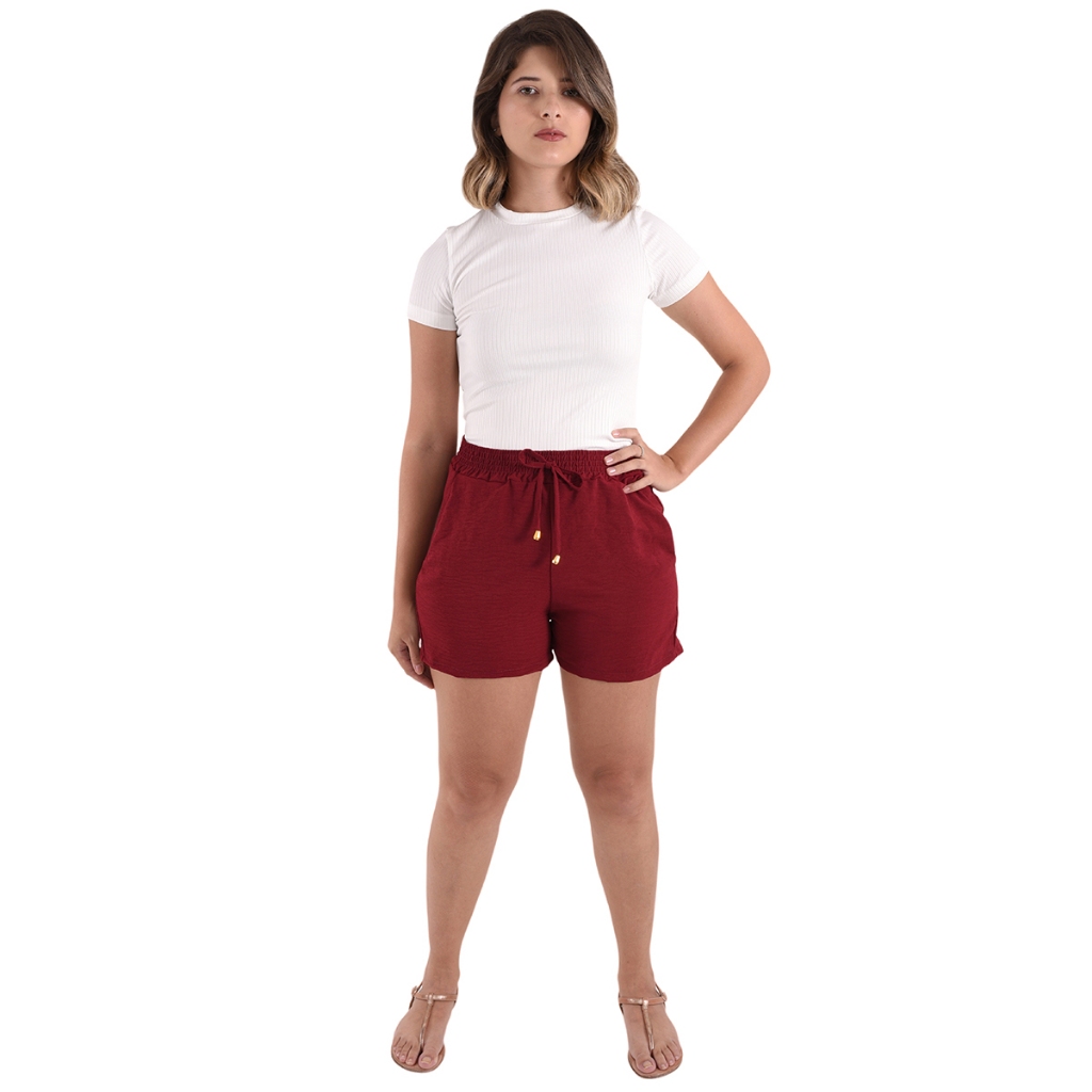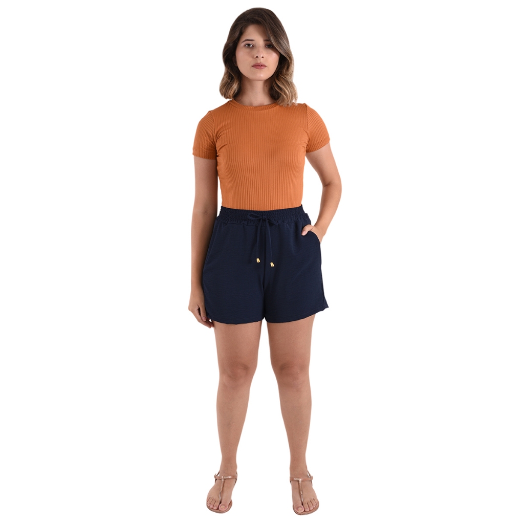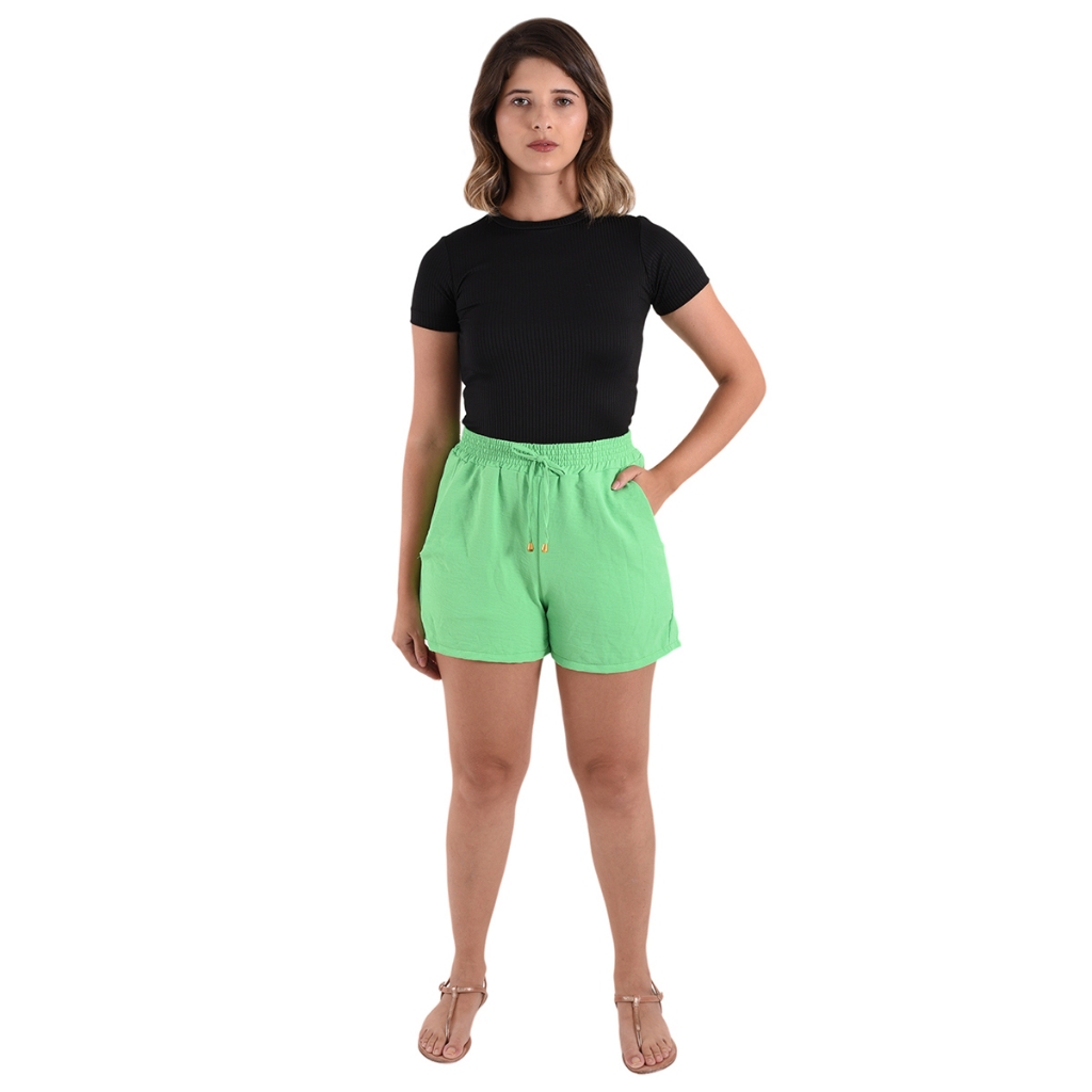 Shorts Bermuda Feminina Basica Dunas Cintura Alta Bolsos