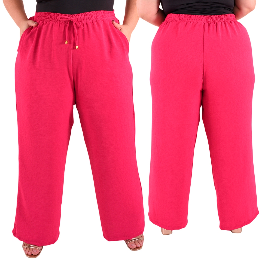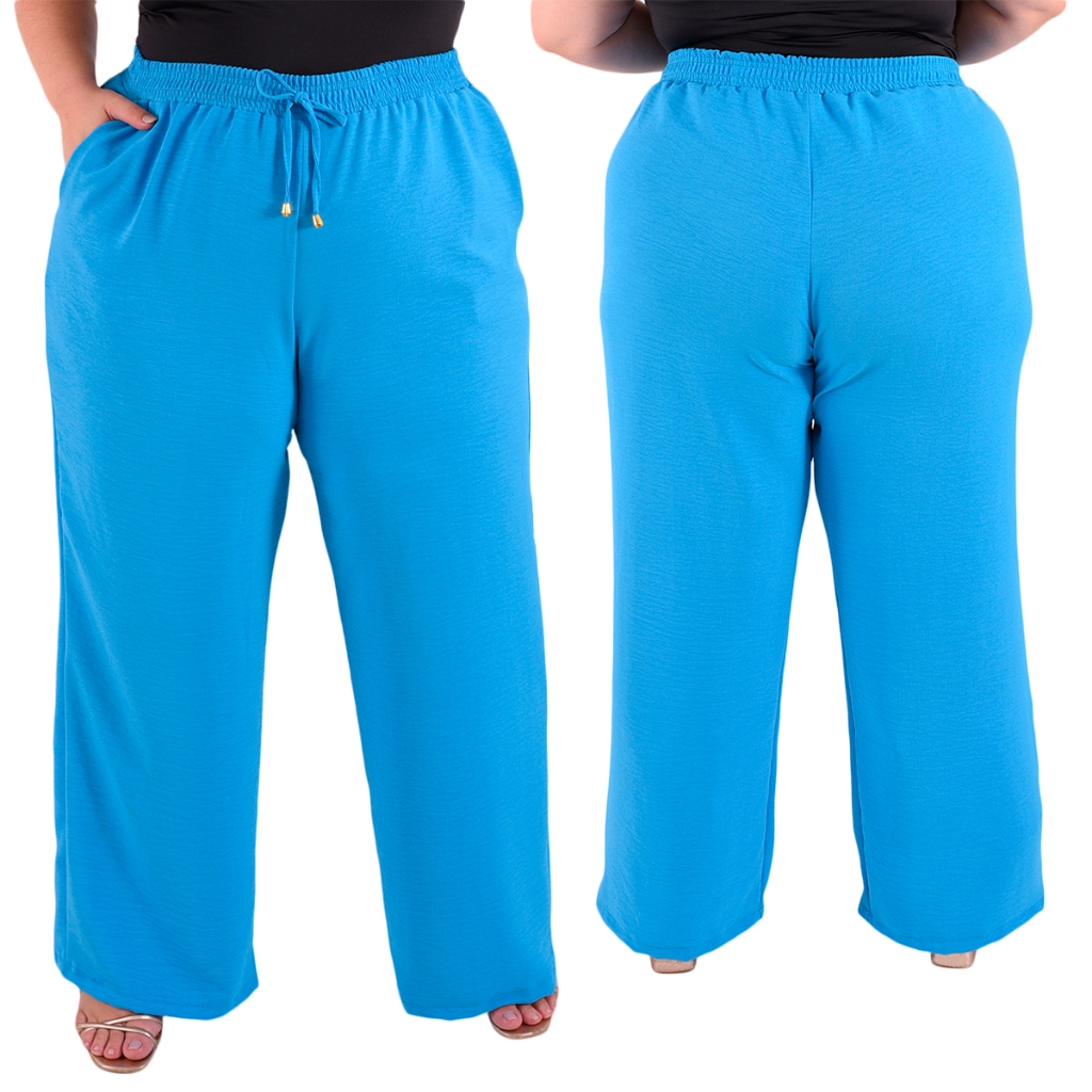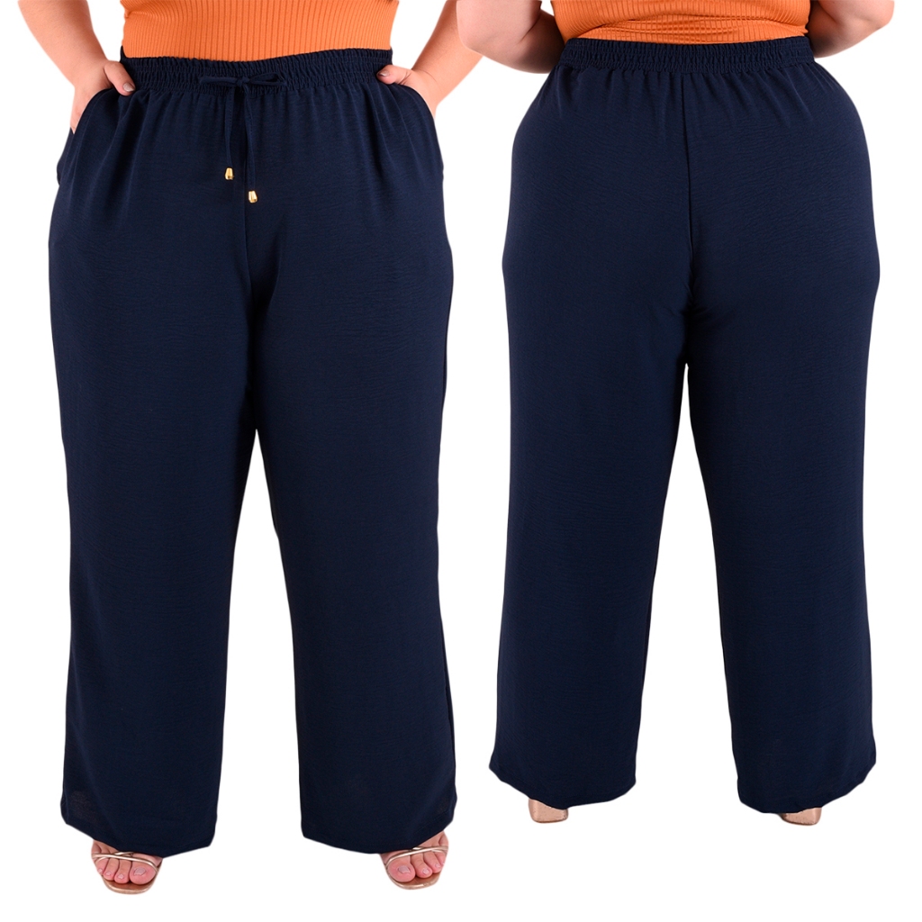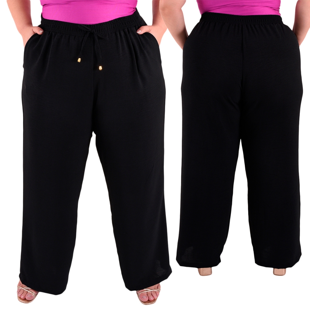 Calça Plus Size Pantalona Feminina Wide Leg Elastico Cós Envio Imediato