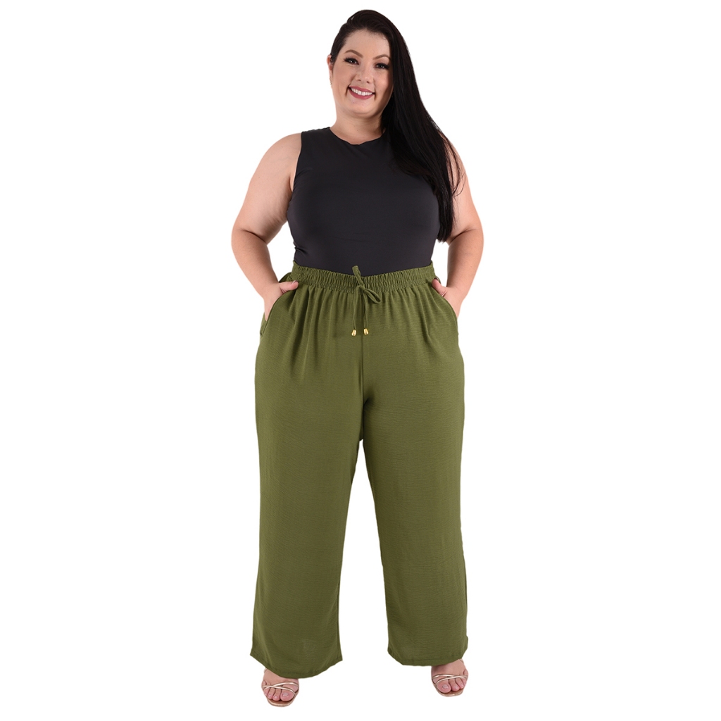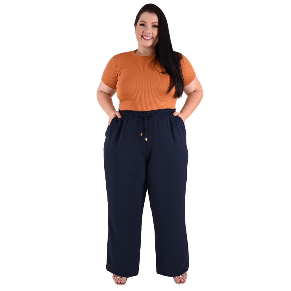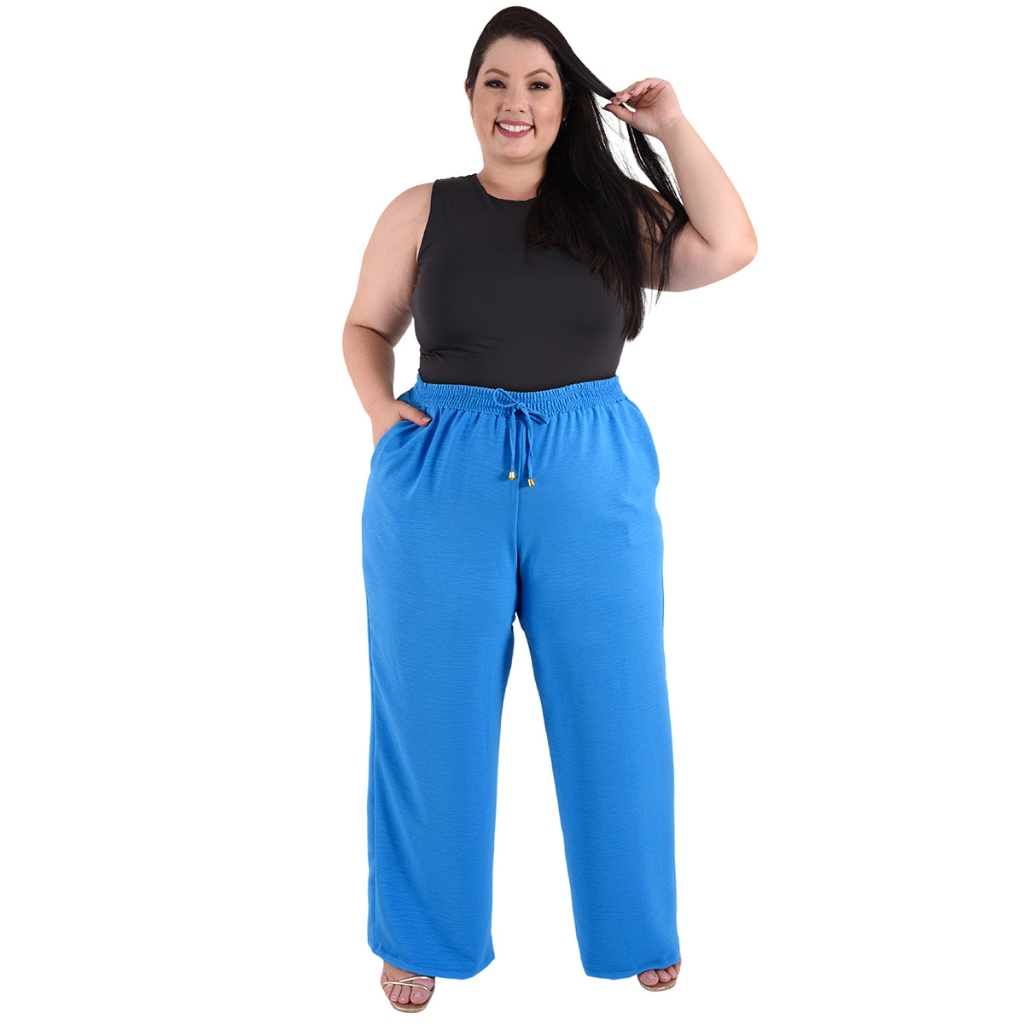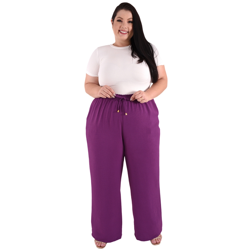 Calça Plus Size Pantalona Feminina Wide Leg Elastico Cós Envio Imediato