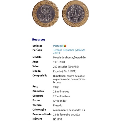 L.: 0324 - Moeda antiga Portugal 200 escudos.