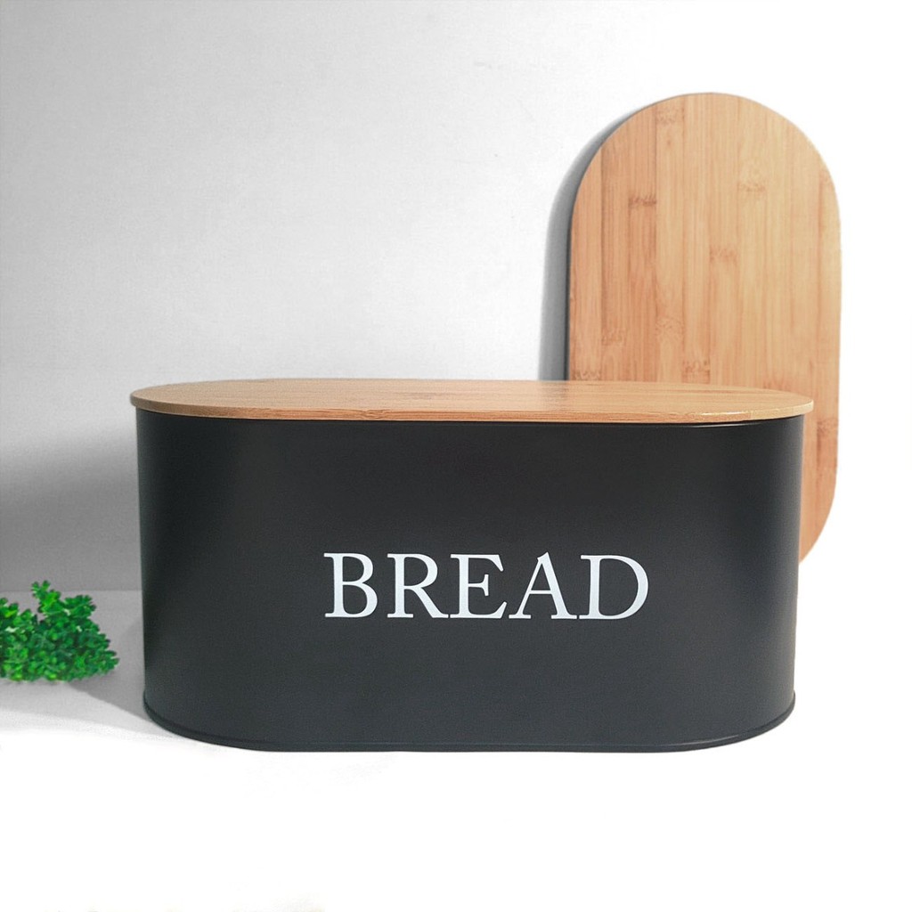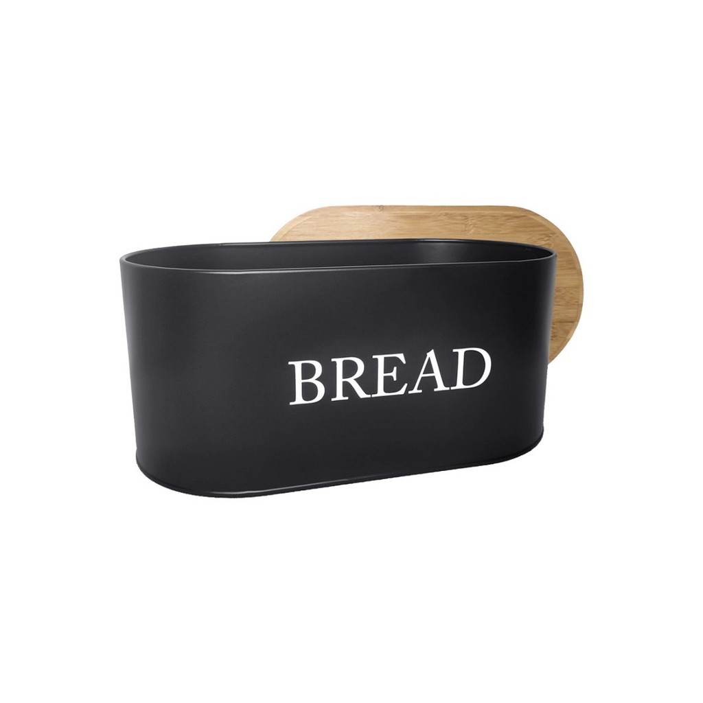 Porta Pao Tampa Bambu Porta Mantimentos Pote Aço Preto 34cm