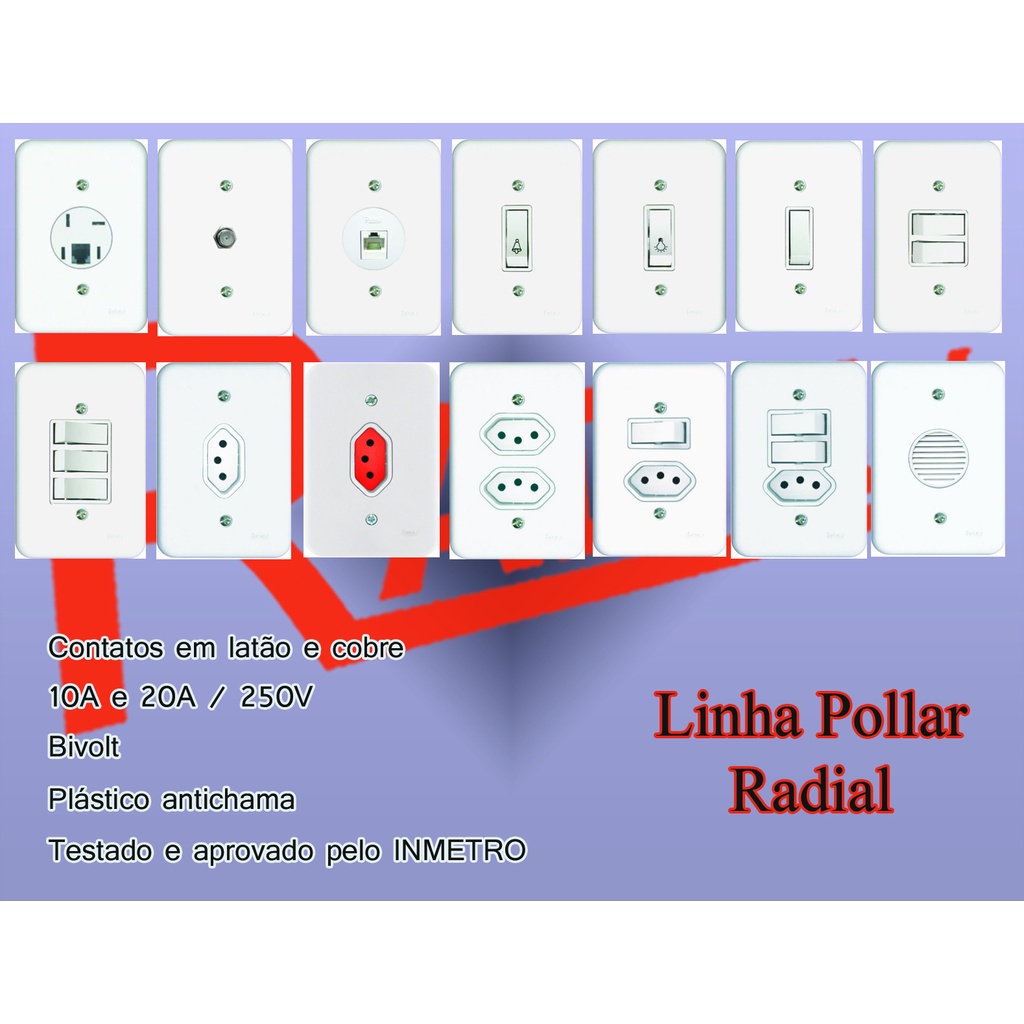 Tomada Dupla 3 Pólos 10a Sem Placa Pollar Radial