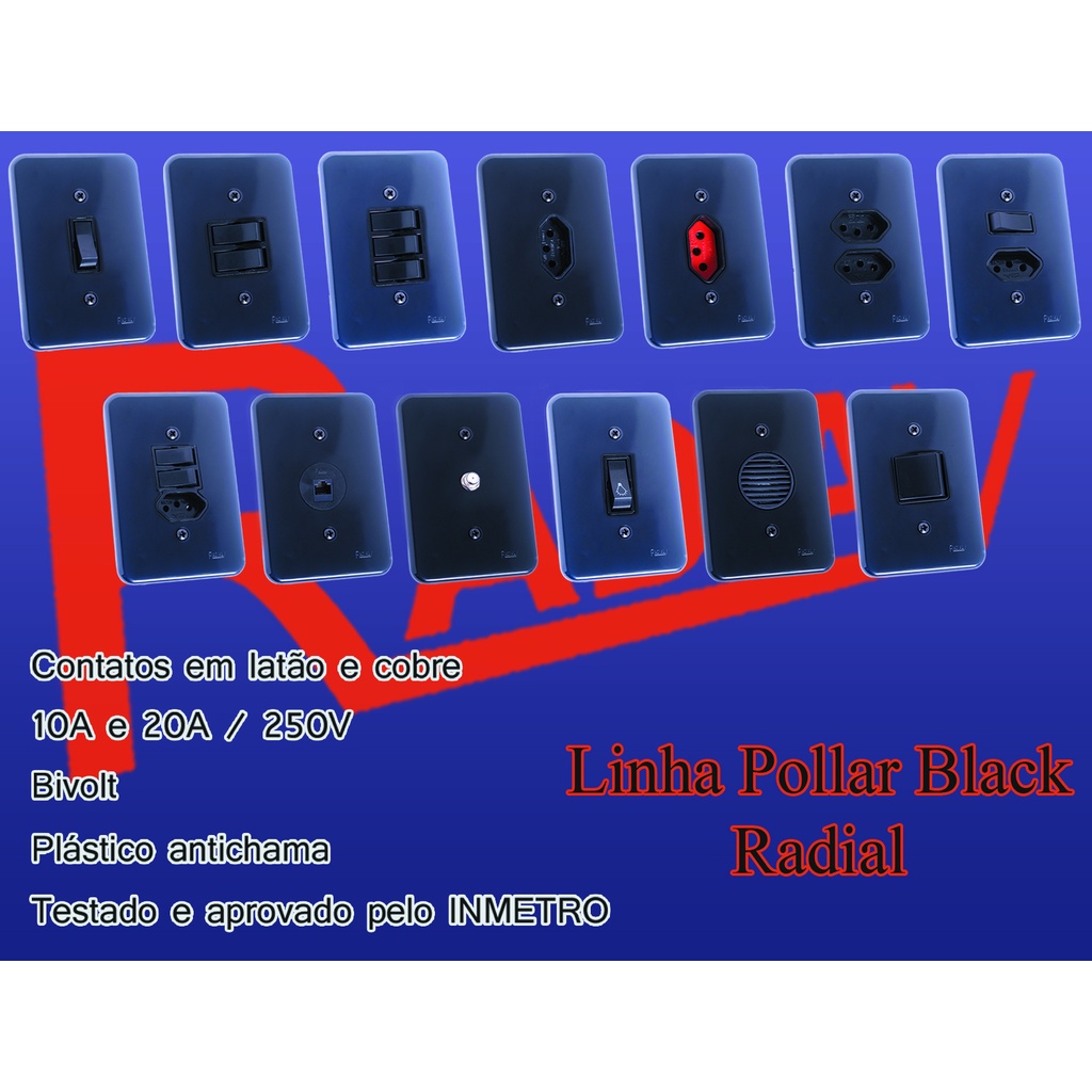 Interruptor 1 Tecla Paralela Linha Pollar Black Radial