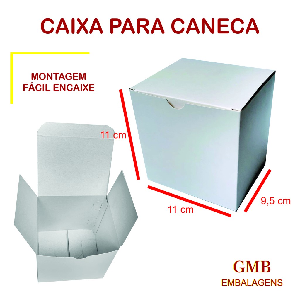 caixa para caneca de porcelana de 325 ml papel cartão branco pode sublimar embelezando seu projeto