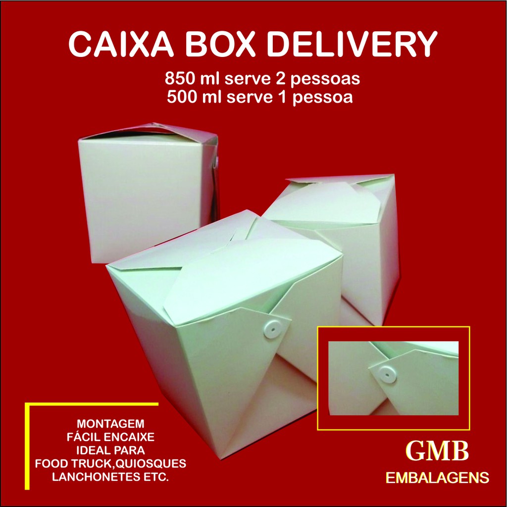 Embalagem yakissoba delivery ideal para consumo imediato acompanha os botões para montagem