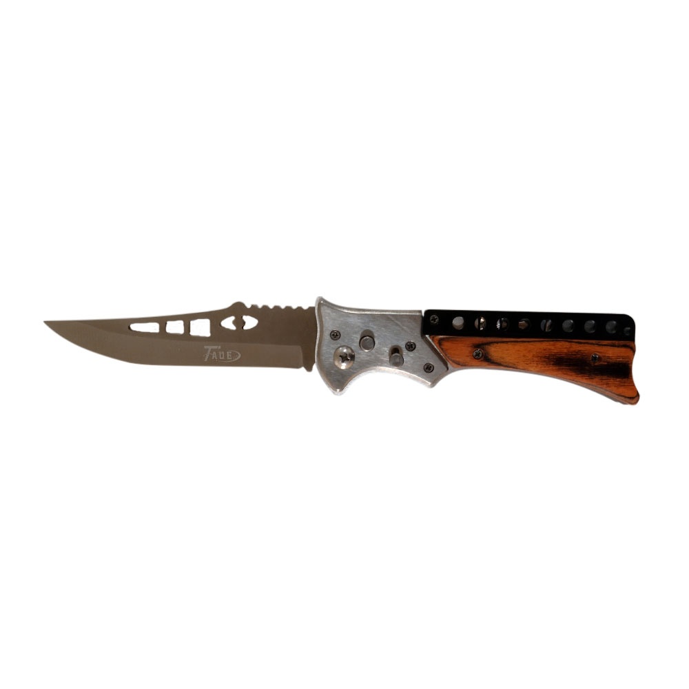 Canivete Automático Inox Cabo Madeira Tigre Taue 725C