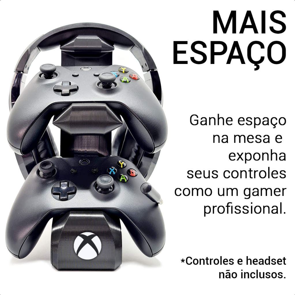 Suporte para 2 Controles Xbox One S X Series Fone Ouvido Headphone Headset Gamer Logo