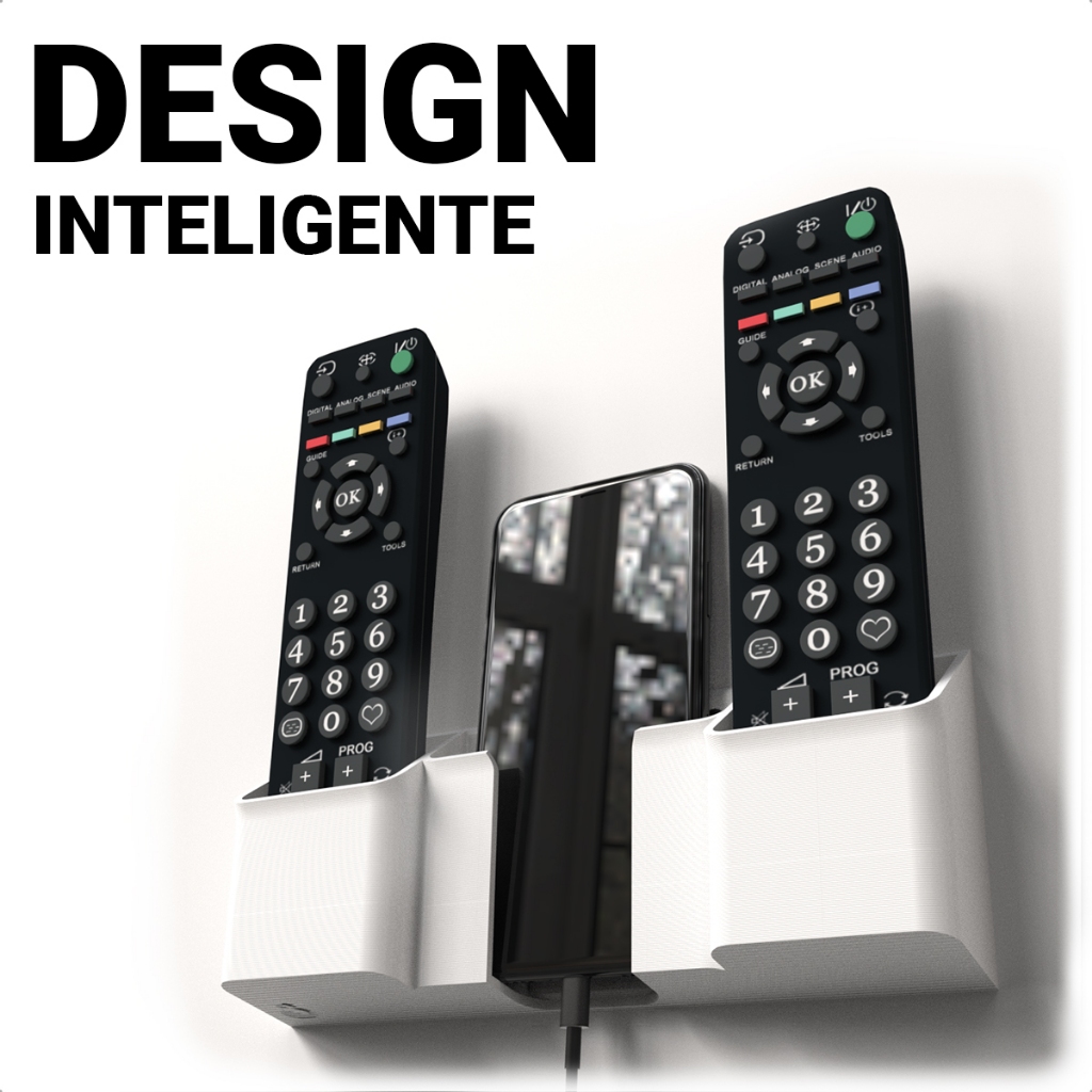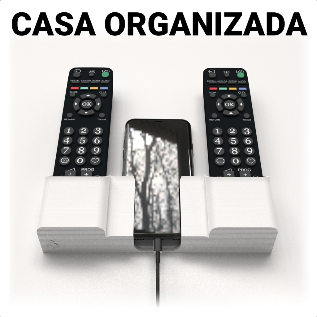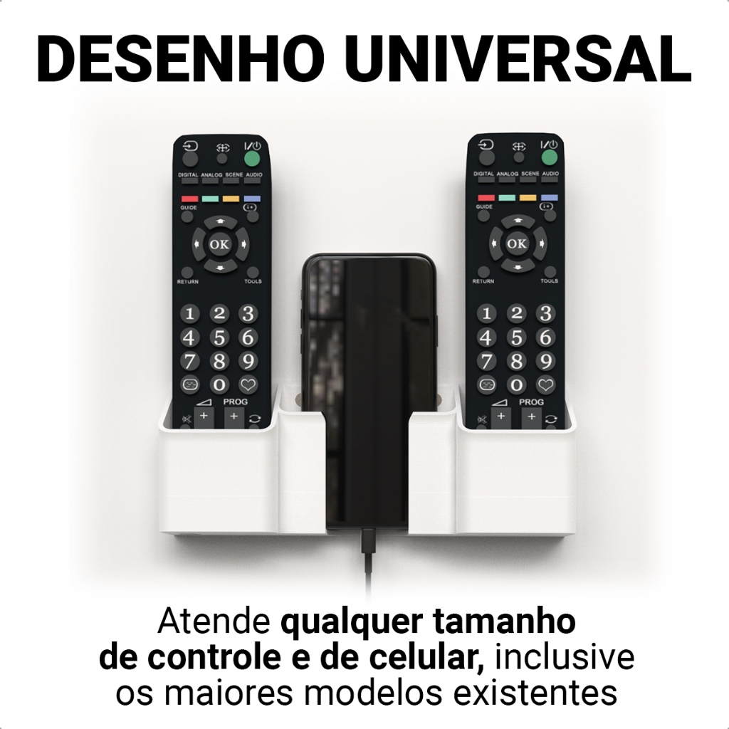 Suporte para 2 Controles Remoto e Porta Celular Parede Universal