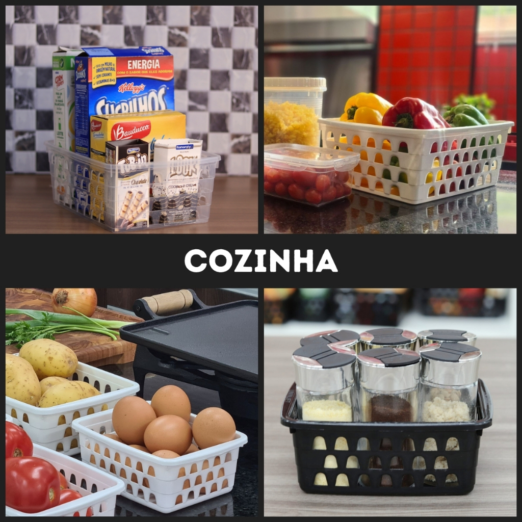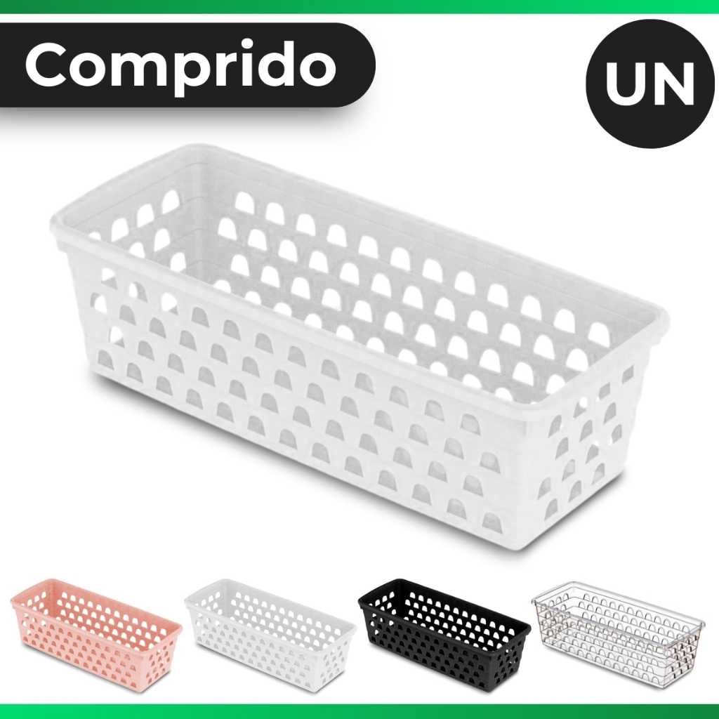 Cesto Multiuso Organizador Reto Cozinha Comprido Branco