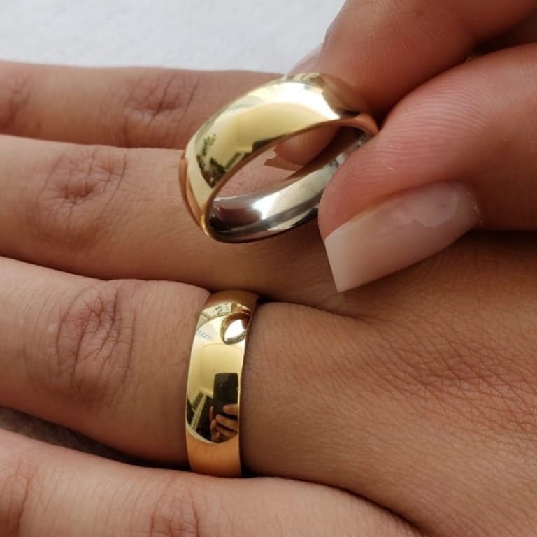 Alianças Par Casamento OURO Banho 6mm Antialergica 3 itens