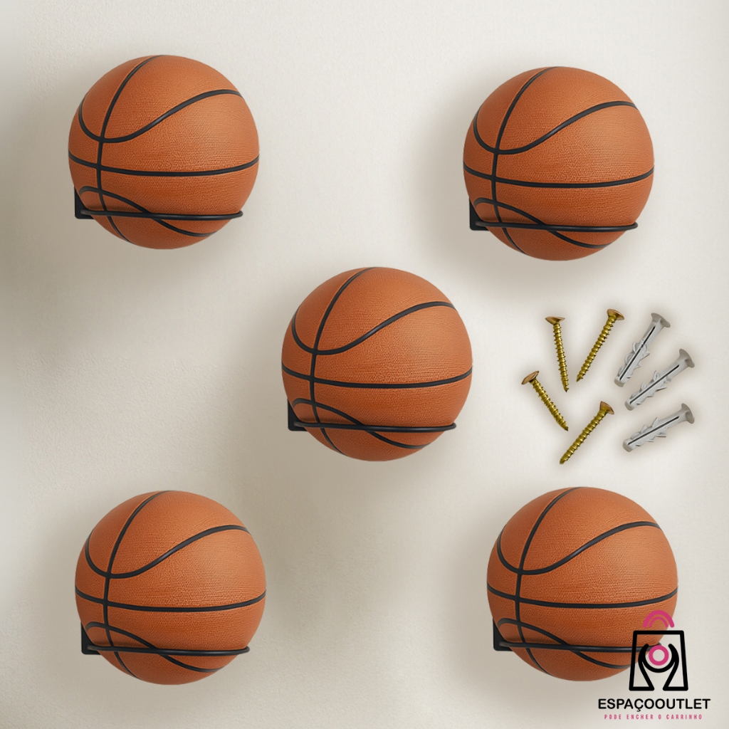 Kit 05 Suporte Bola Futebol Basquete Vôlei + Parafusos e Buchas Aço Reforçado 14x14cm