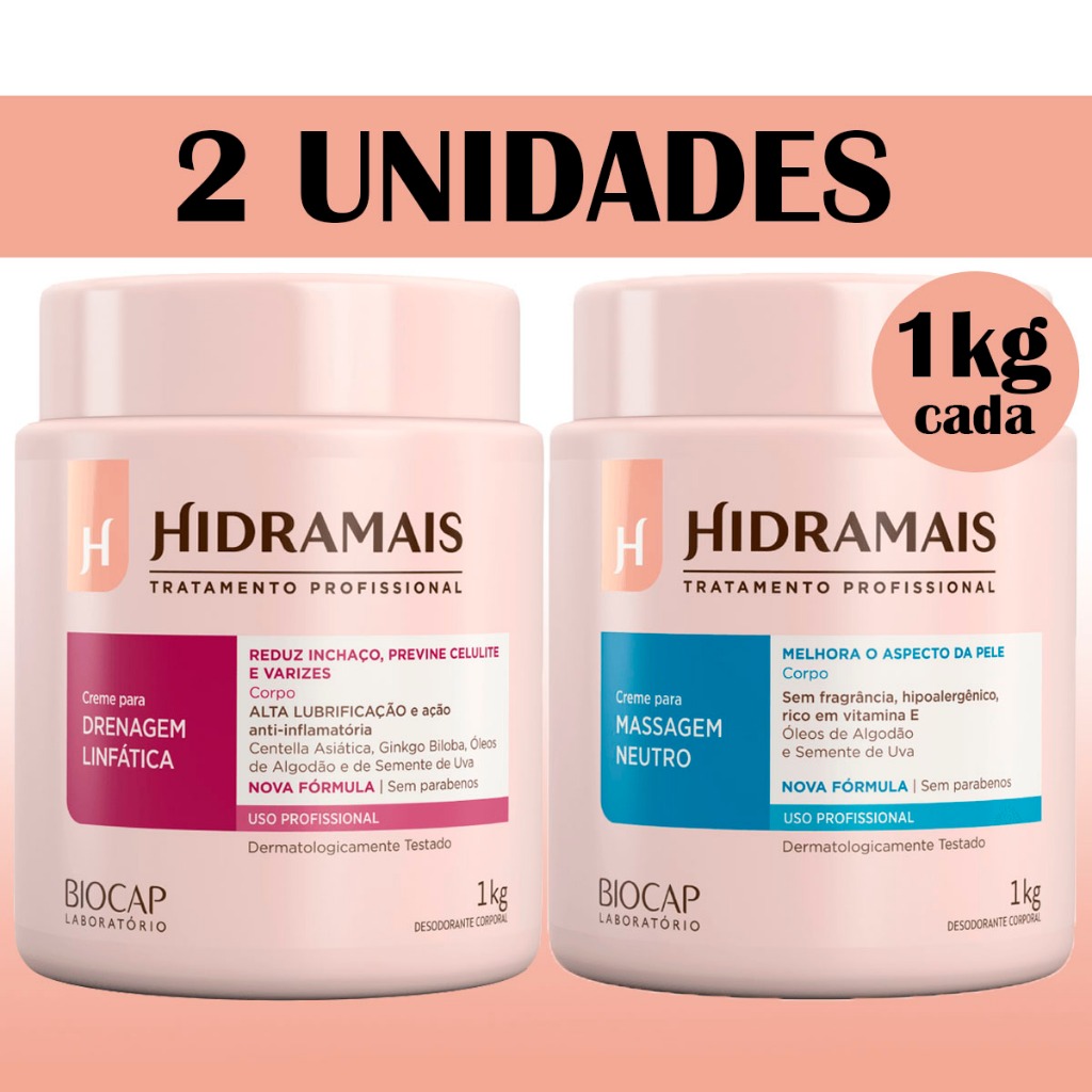 Kit Com 1 Creme Hidramais para Drenagem Linfática 1kg + 1 Creme Hidramais para Massagem Neutro 1kg