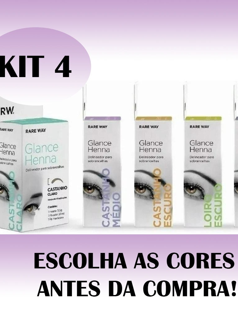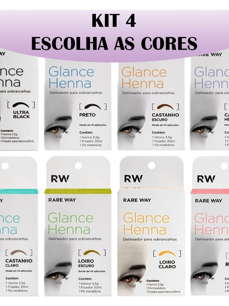 Kit 4 Hennas Glance Para Sobrancelhas Rare Way 100% Natural