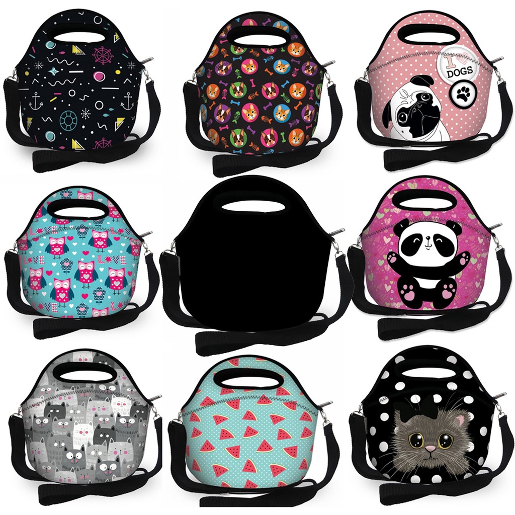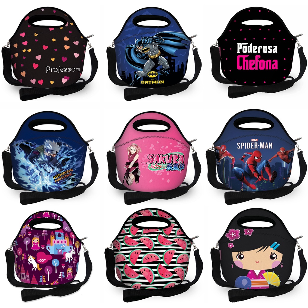 Bolsa Térmica Feminina Lancheira infantil Neoprene Marmita Cooler Varias Estampas