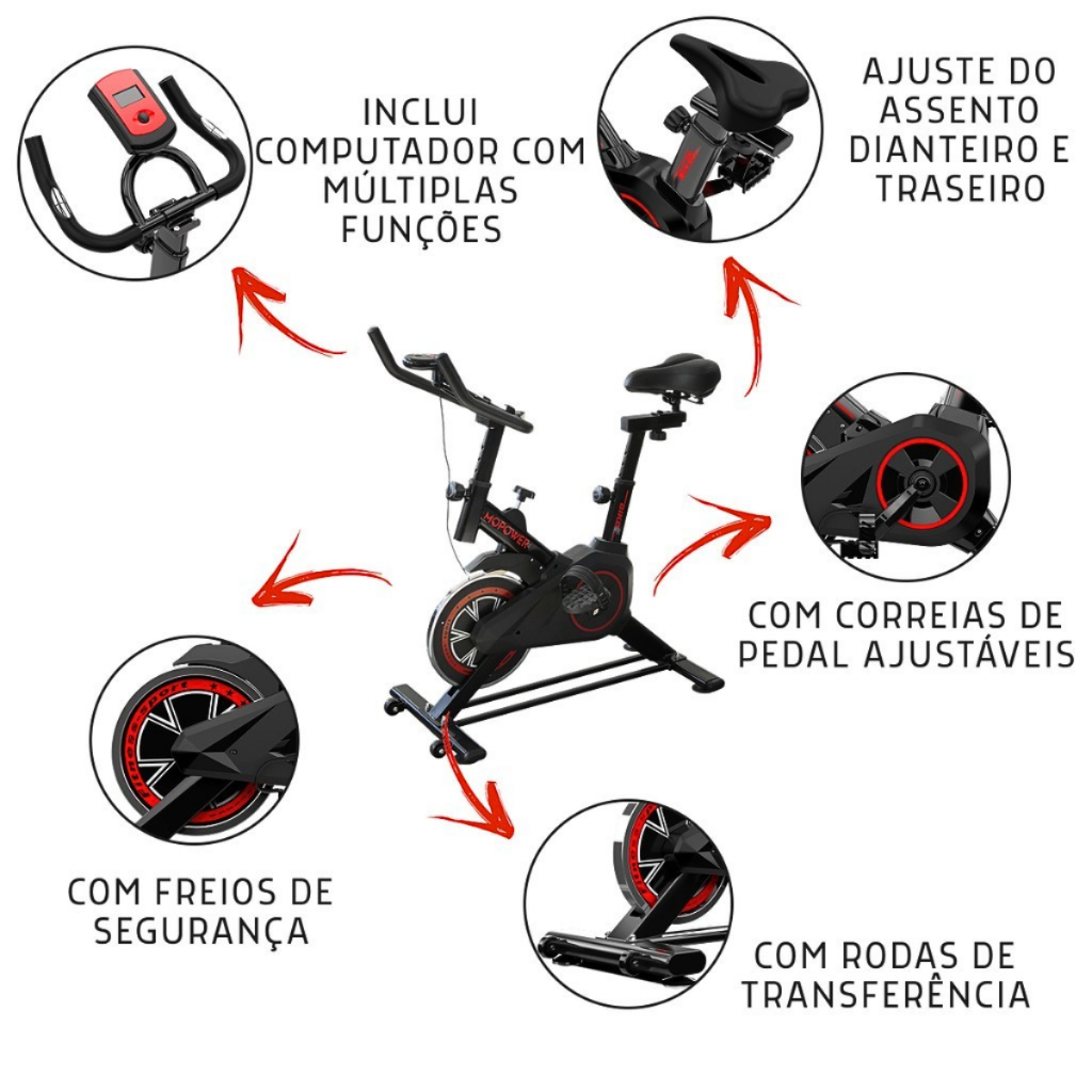 Bicicleta Bike Ergométrica Spinning Academia Fitness Profissional Cardio e Musculação até 120kg