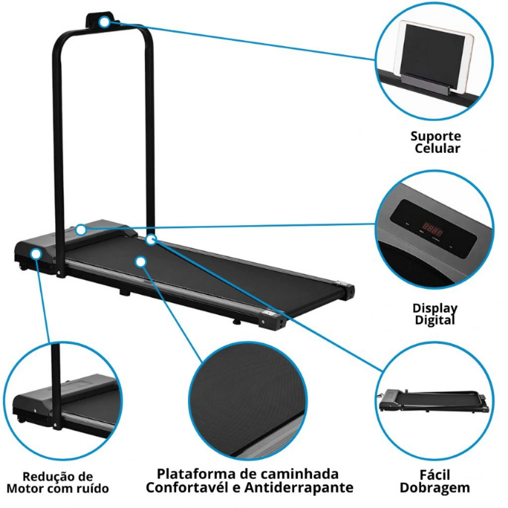 Esteira Motorizada Elétrica Esteira Portátil Fitness Residencial Até 120 kg