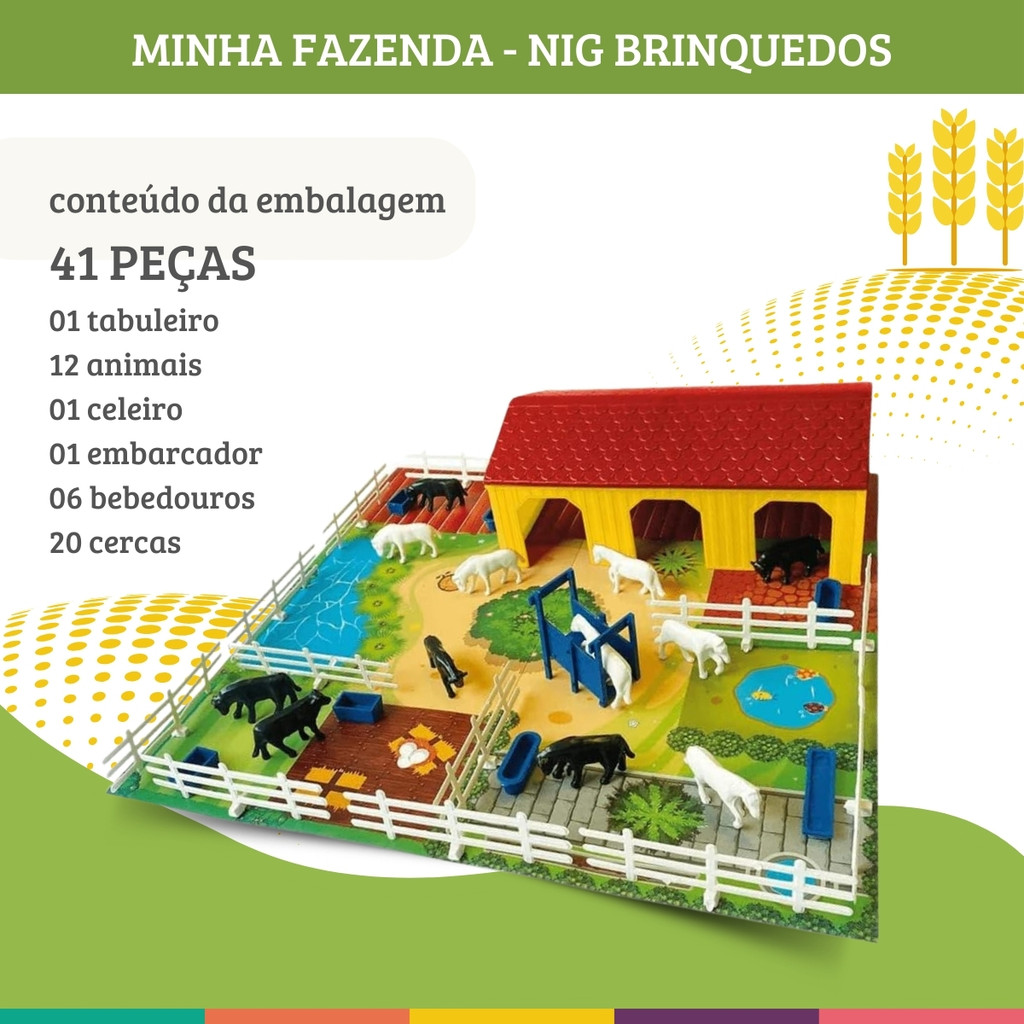 Minha Fazenda Com 41 Peças Brinquedo Cercas Animais Cavalo Vaca Celeiro Mini Fazendinha