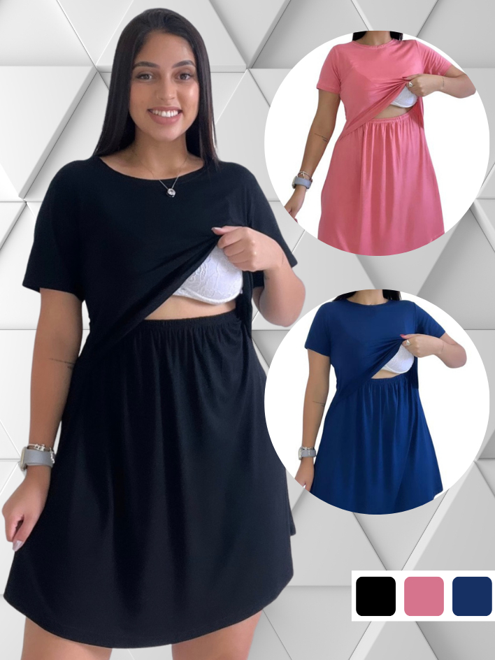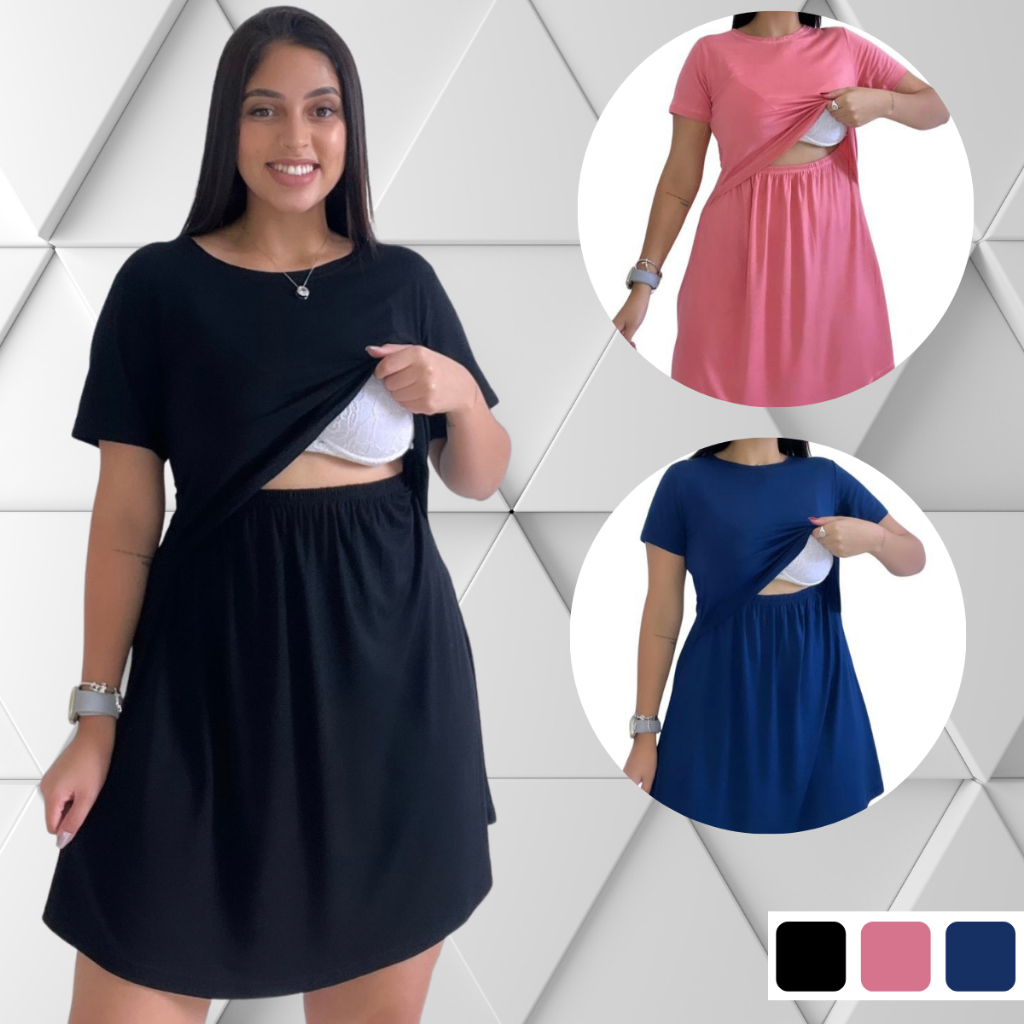 Kit 2 Vestido Amamentação Gestante Pós Parto Saida Maternidade Casual Gravida Amamentar Camisola